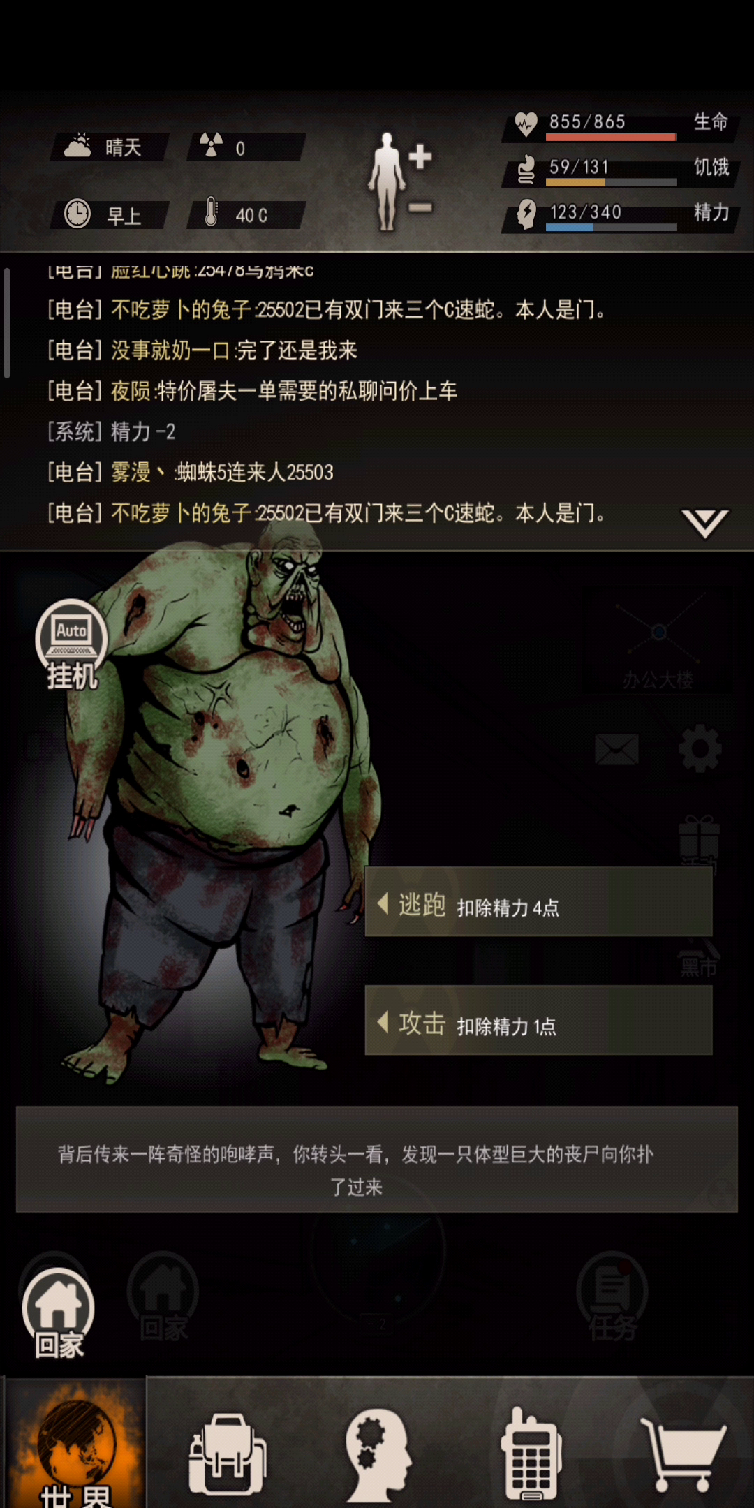 (长文)首先发点好玩的 重建家园里1天是对应现实里多少时间? 凌晨1min,早上1min30s,上午1min30s,中午1min,下午2min,傍晚1min,晚上1min,深夜3min。合计:12分钟 由此可以得知: 1.组织1一人五洞,逃跑搜五洞平均用时是8-9分钟,也就是一天,所以25洞至少要打60-3=57分钟,也就是近1个小时。 2.组织4小退一天搜3-4洞,轮回在6洞甚至更高,可得: 1