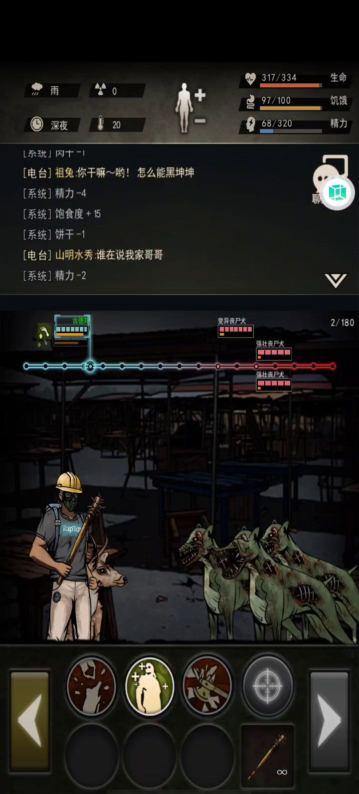 医生不像拳击手前期占优势,但能吃到医疗也算不错,没有狼牙棒就只能被卡在集市,关于变异狼,要么先打头狼,要么先把两只小的解决,都可以主要看运气吧,但我觉得打头狼更容易过一点,打小的运气成分差的话就不要去试了(ノД`) 医生不像拳击手前期占优势,但能吃到医疗也算不错,没有狼牙棒就只能被卡在集市,关于变异狼,要么先打头狼,要么先把两只小的解决,都可以主要看运气吧,但我觉得打头狼更容易过一点,打小的运气成