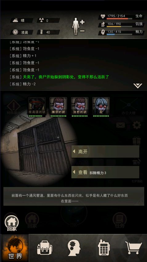 医生不像拳击手前期占优势,但能吃到医疗也算不错,没有狼牙棒就只能被卡在集市,关于变异狼,要么先打头狼,要么先把两只小的解决,都可以主要看运气吧,但我觉得打头狼更容易过一点,打小的运气成分差的话就不要去试了(ノД`) 医生不像拳击手前期占优势,但能吃到医疗也算不错,没有狼牙棒就只能被卡在集市,关于变异狼,要么先打头狼,要么先把两只小的解决,都可以主要看运气吧,但我觉得打头狼更容易过一点,打小的运气成
