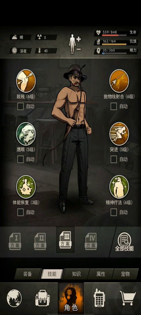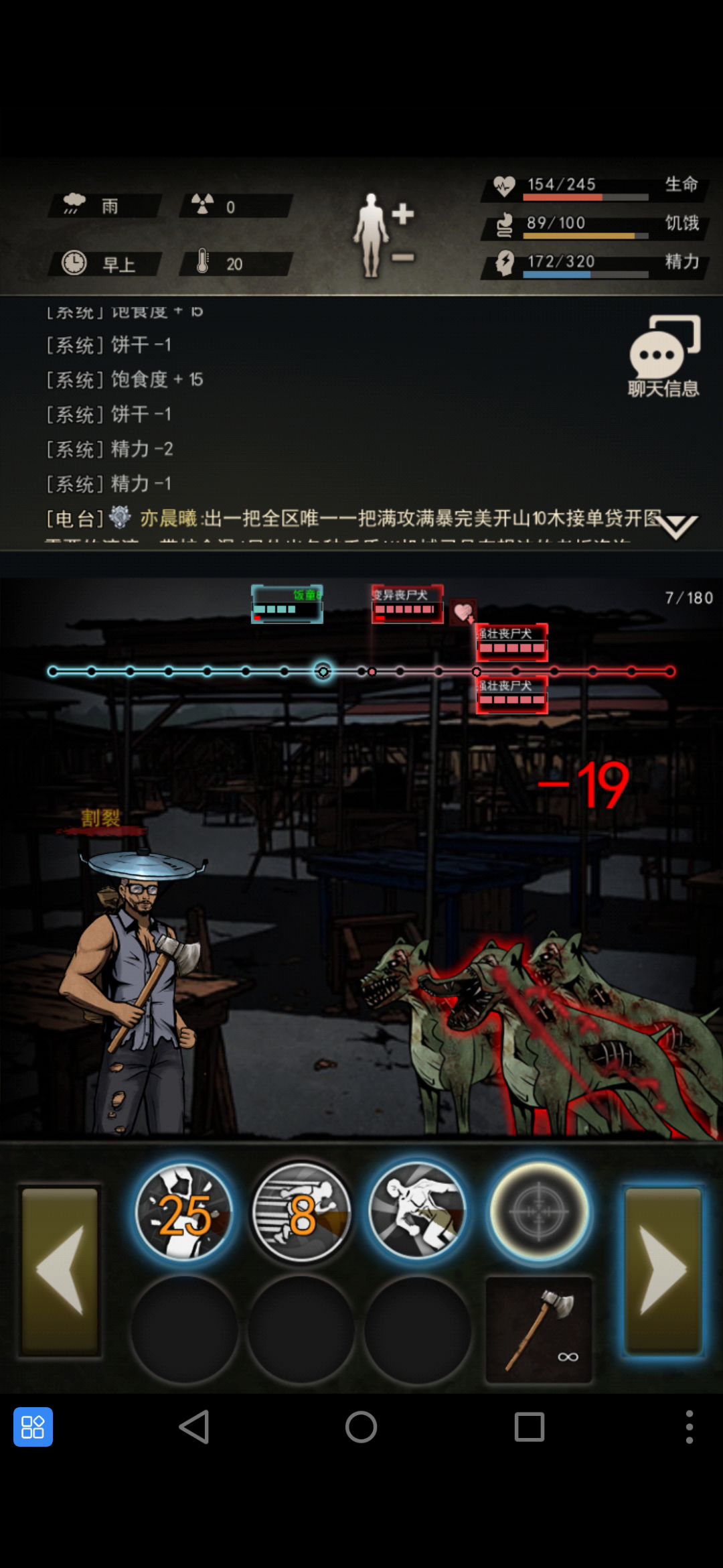 看着就行,玩这种最好伐木斧,其次精良小刀,最次精良钢管,还要1-5的健身,手斧最好出次暴击,技能被闪避次数还少