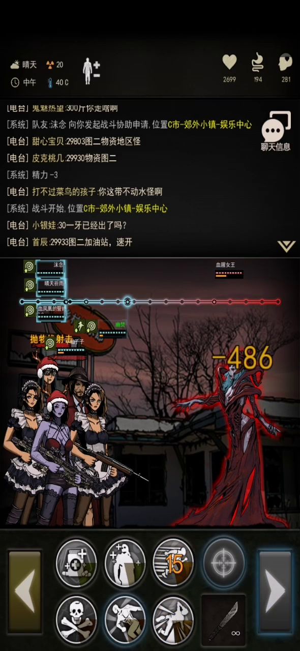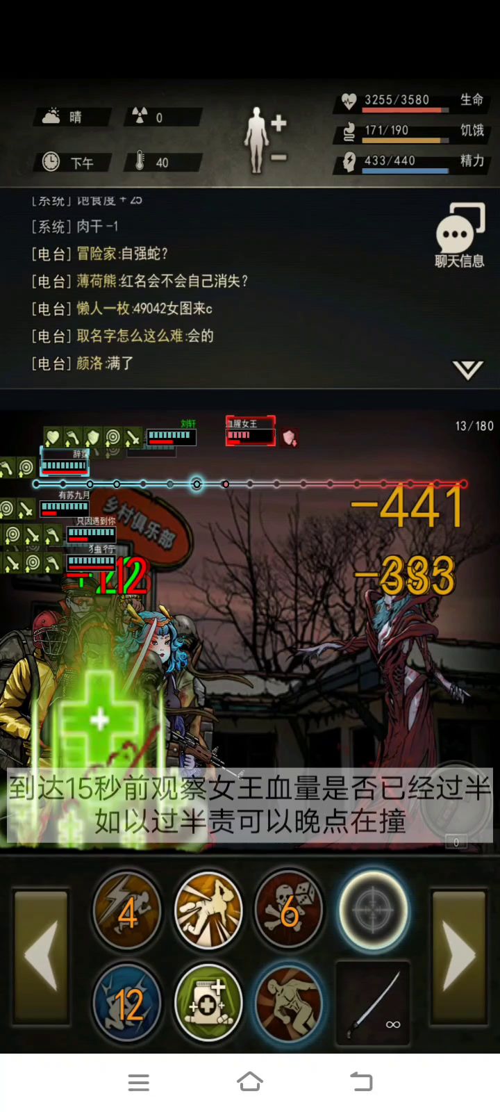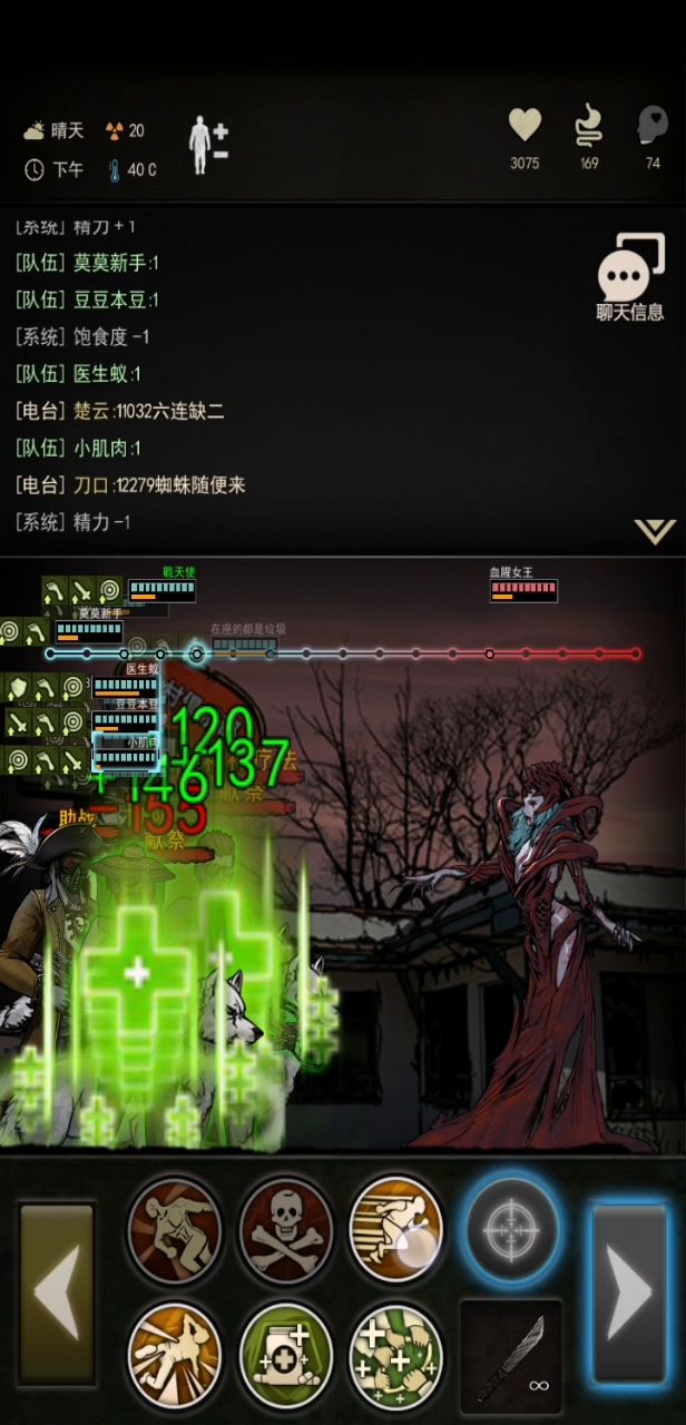 介绍一下女王这个der,首先女王作为本游戏目前为止的第二大BOSS,拥有极为多样的技能机制,本文详细介绍一下女王的技能机制。 第一点,女王是拥有三个阶段的强大丧尸,每个阶段都拥有不同的技能。 第一阶段:女王在前进2次后(第三秒)释放技能突袭,向前突进四格并带有击退效果,紧接着释放攻击距离为三格的猎杀,之后便是一小段平稳输出期,直到18秒左右女王会释放第二次突袭(造成500到600点左右的伤害),紧