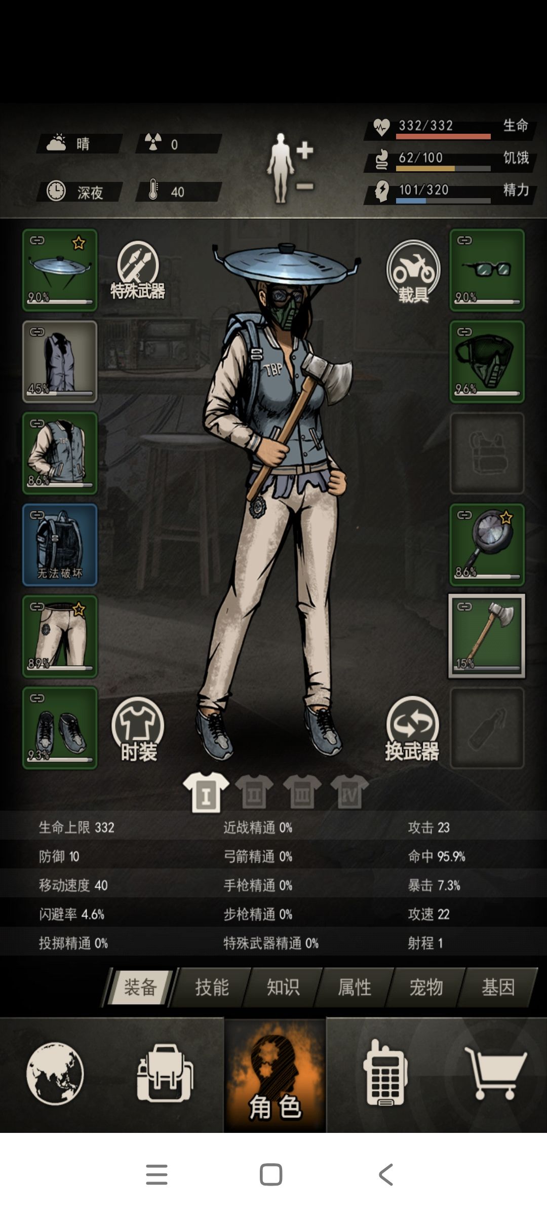 技能:破甲10,重击/突/闪9,精9高5 药前:2500,117,65爆 蠕虫属性跟上面一样 没有尝试网,买不起协防 好多攻略都毒矛(容易空)我选的高燃 不知道是不是11区第一个开山开图六的