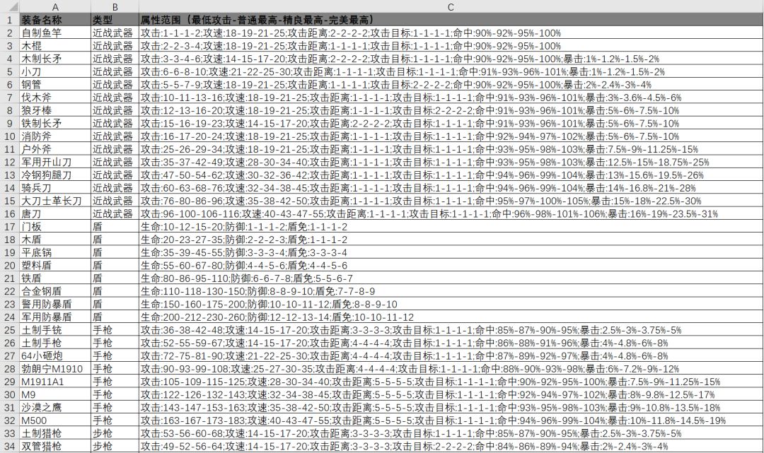 最新装备属性表(我是搬运工)
