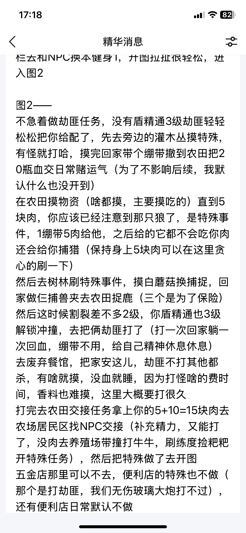 我最后悔的就是把瓶盖拿来买前面的那些道具,明明当时可以自己打的,还有就是改造武器改的竟是负数浪费瓶盖,现在就很容易死,精力恢复的很慢啊,武器也不知道怎么去升级,抓捕这事我也没看懂,种土豆这事也看不懂,新手教程不详细。现在几个瓶盖连手枪子弹都买不起,瓶盖也好贵哦,而且每次探索都会遇到强劲对手,另外我买的弓箭还感觉不如斧头,还有装备的技能也不知道为什么半天不升级我尽量把他们友好nPC可买的都买了。
