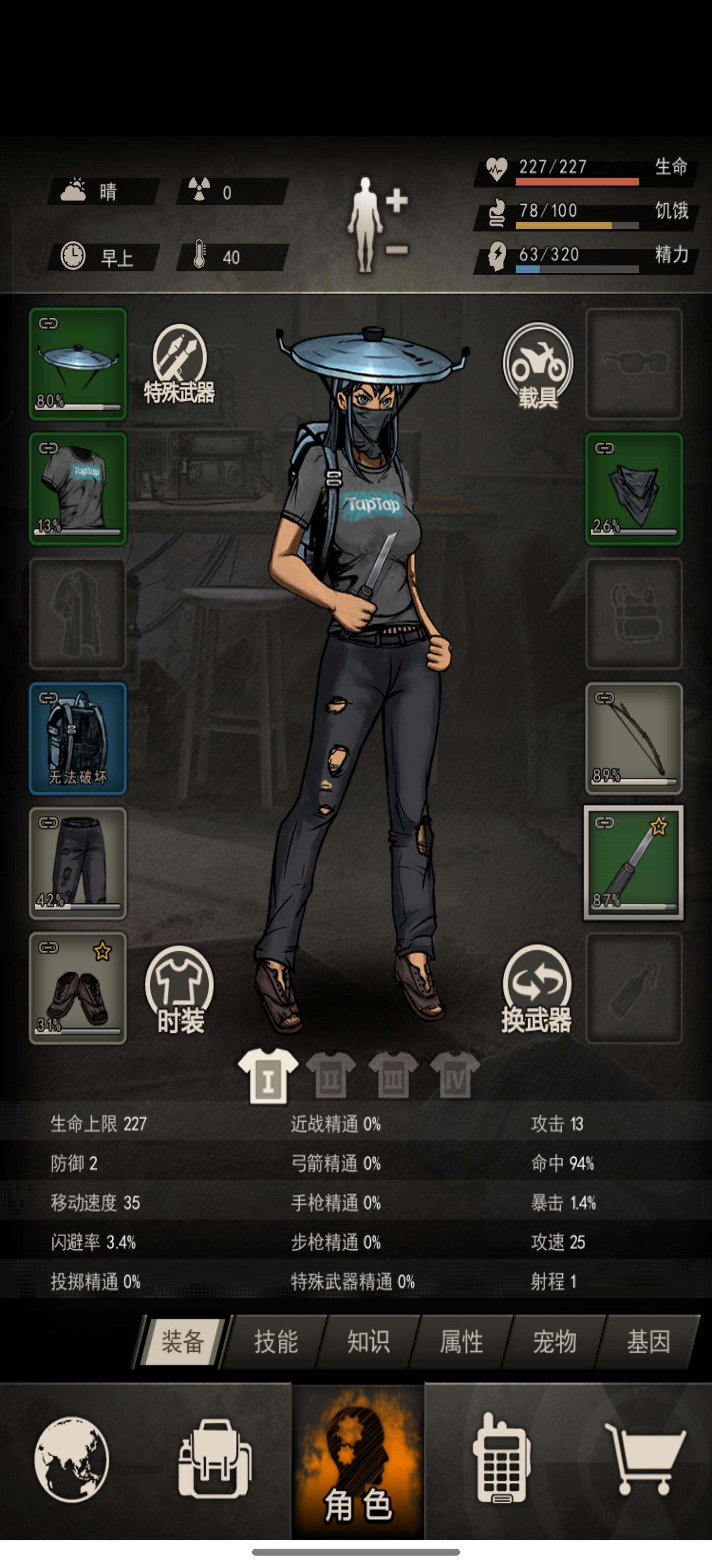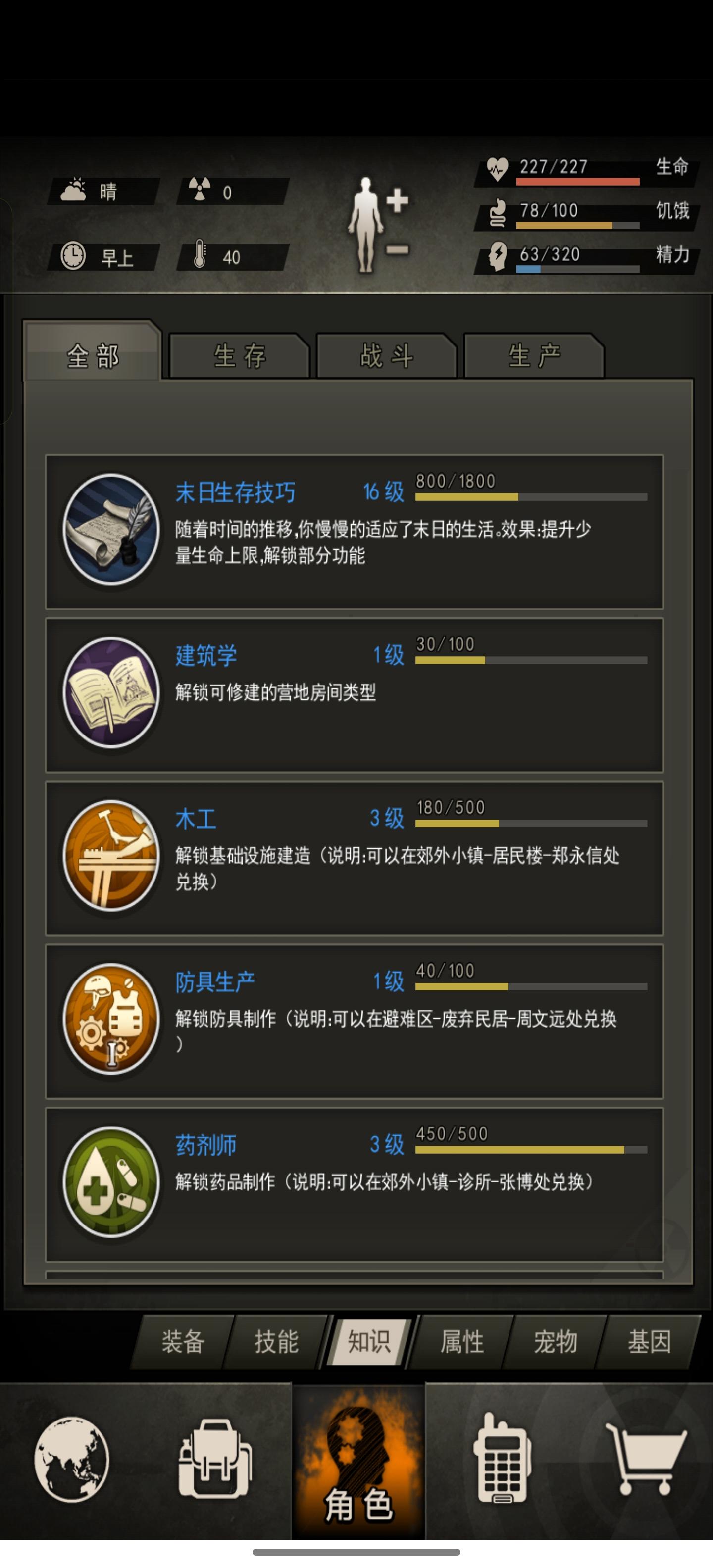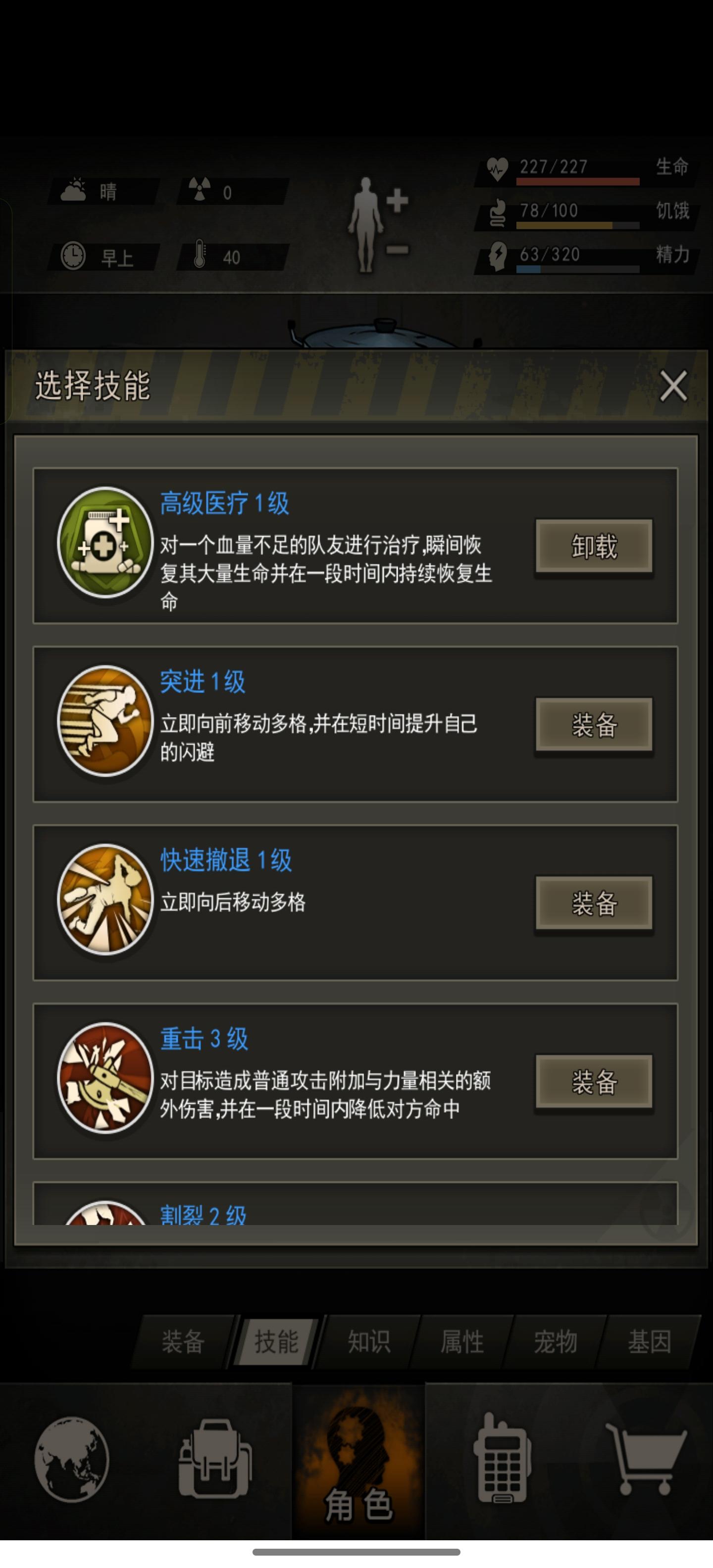 是在不懂这个精神疗法怎么用,打怪这个技能就是没亮过,还有就是为什么装上这个东西之后打怪攻击就-6的伤害啊,之前不是-11的嘛,有大佬可以推荐一下萌新搭配嘛,进官方群也不同意人进,实在不知道去哪里问啦#重建家园 以下是我的问题1.食物老是不足,去农场杀鹿或者找肉干是最优解吗(对于其他地图还没有解锁来说)2.支线主线卡进度条,实在打不过劫匪,该如何办?刷精力去找材料制造武器来提升攻击和防御吗3