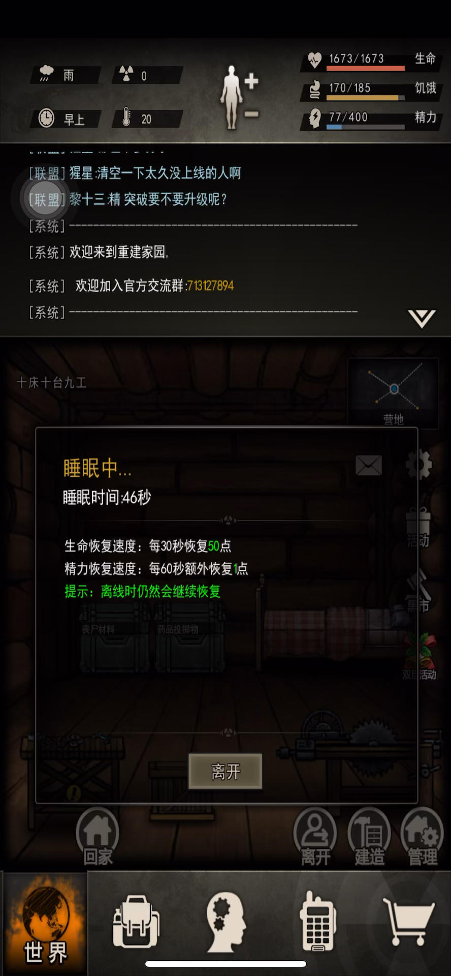 是在不懂这个精神疗法怎么用,打怪这个技能就是没亮过,还有就是为什么装上这个东西之后打怪攻击就-6的伤害啊,之前不是-11的嘛,有大佬可以推荐一下萌新搭配嘛,进官方群也不同意人进,实在不知道去哪里问啦#重建家园 以下是我的问题1.食物老是不足,去农场杀鹿或者找肉干是最优解吗(对于其他地图还没有解锁来说)2.支线主线卡进度条,实在打不过劫匪,该如何办?刷精力去找材料制造武器来提升攻击和防御吗3