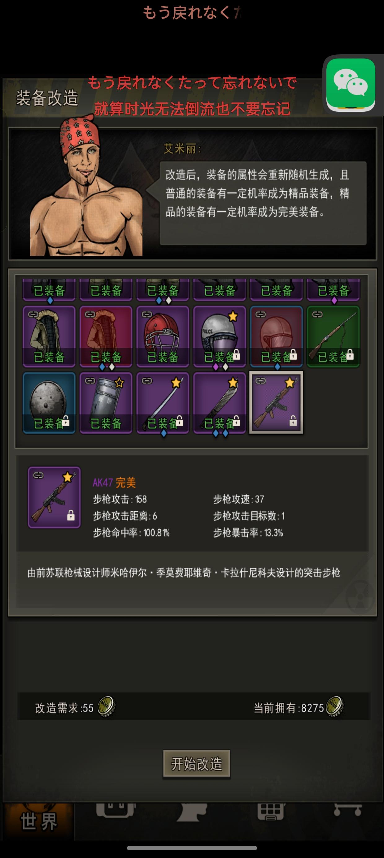 是在不懂这个精神疗法怎么用,打怪这个技能就是没亮过,还有就是为什么装上这个东西之后打怪攻击就-6的伤害啊,之前不是-11的嘛,有大佬可以推荐一下萌新搭配嘛,进官方群也不同意人进,实在不知道去哪里问啦#重建家园 以下是我的问题1.食物老是不足,去农场杀鹿或者找肉干是最优解吗(对于其他地图还没有解锁来说)2.支线主线卡进度条,实在打不过劫匪,该如何办?刷精力去找材料制造武器来提升攻击和防御吗3