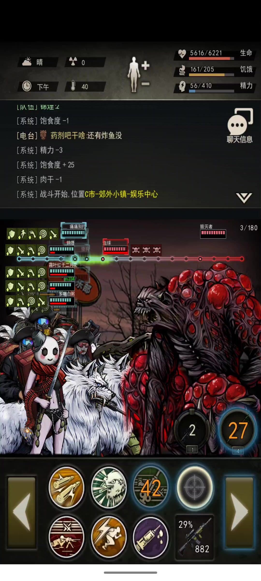 Boss:行尸异变者背景:是由z博士的同事MK教授,在对感染体患者实验时,由感染体患者变异而成,X药剂与感染源蠕虫基因结合的变异体,因感染迅速,由军部科研所内狂暴,很快将部队驻地,屠戮一空,成为了这片区域的丧尸王者。技能:主(缠绕)硬控并持续伤害两回合,(挥舞) 蓄能期,为玩家攻击的二次时间,将其手中的狼牙棒发出150%的沉重伤害。被动(钢化)当玩家附带控制技能时,Boss将强制进入钢化状态