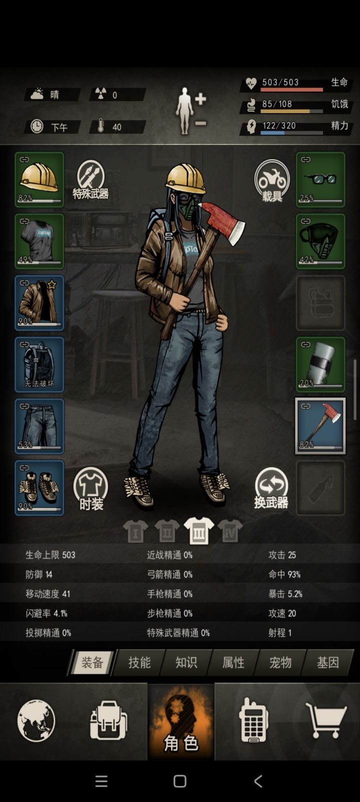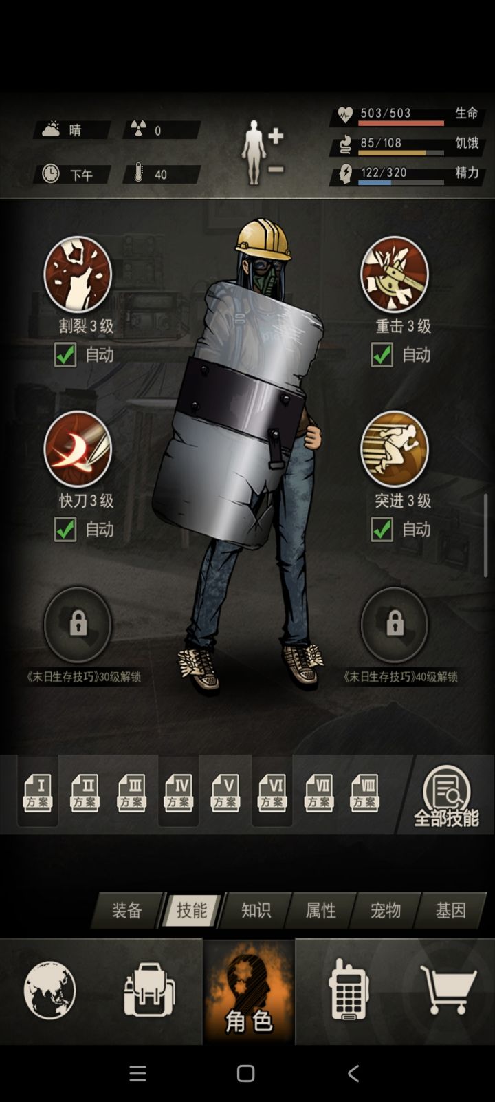 如图,感觉进度一下慢下来了,好多探索方向,也不知道干啥。①现在打算在做一个蓝色斧头,木工还和刀具生产还差一点。②力量是吃了烤肉+2,健身1满了,下一步打算练瑜伽,可以吗大佬们。③有去做蛇童,有点社恐加上不熟练,老是被打死😭,打算练一下卡位再去,食物不缺了有很多肉干。④我种了很多土豆,我之前老是吃烤土豆,但没柴了,拿土豆没办法。现在是每天去图二森林捡柴,但是消耗很快。⑤最后一张图是屯的东西