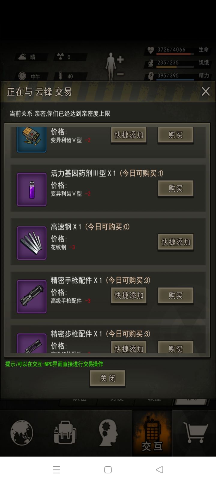 如图,感觉进度一下慢下来了,好多探索方向,也不知道干啥。①现在打算在做一个蓝色斧头,木工还和刀具生产还差一点。②力量是吃了烤肉+2,健身1满了,下一步打算练瑜伽,可以吗大佬们。③有去做蛇童,有点社恐加上不熟练,老是被打死😭,打算练一下卡位再去,食物不缺了有很多肉干。④我种了很多土豆,我之前老是吃烤土豆,但没柴了,拿土豆没办法。现在是每天去图二森林捡柴,但是消耗很快。⑤最后一张图是屯的东西