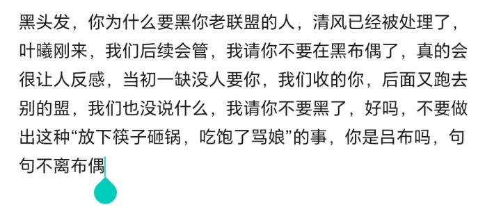 黑头发,针对之前帖子里的表述,我先跟你道个歉,这个用词确实太重了,有失客观,是我不对。 但还是想跟你说清楚:清风的事,他辱骂他人、侮辱女性的言行,我们联盟从始至终都不认同、不纵容,绝大多数成员也没参与,他的个人行为只代表他自己,和布偶联盟完全无关。当初你为了冲刺布偶、不想拖累联盟选择离开,我们一直尊重你的选择,后续说你背叛是我一开始对你的不了解。 只是实在不理解,你明知道这件事和联盟无关,