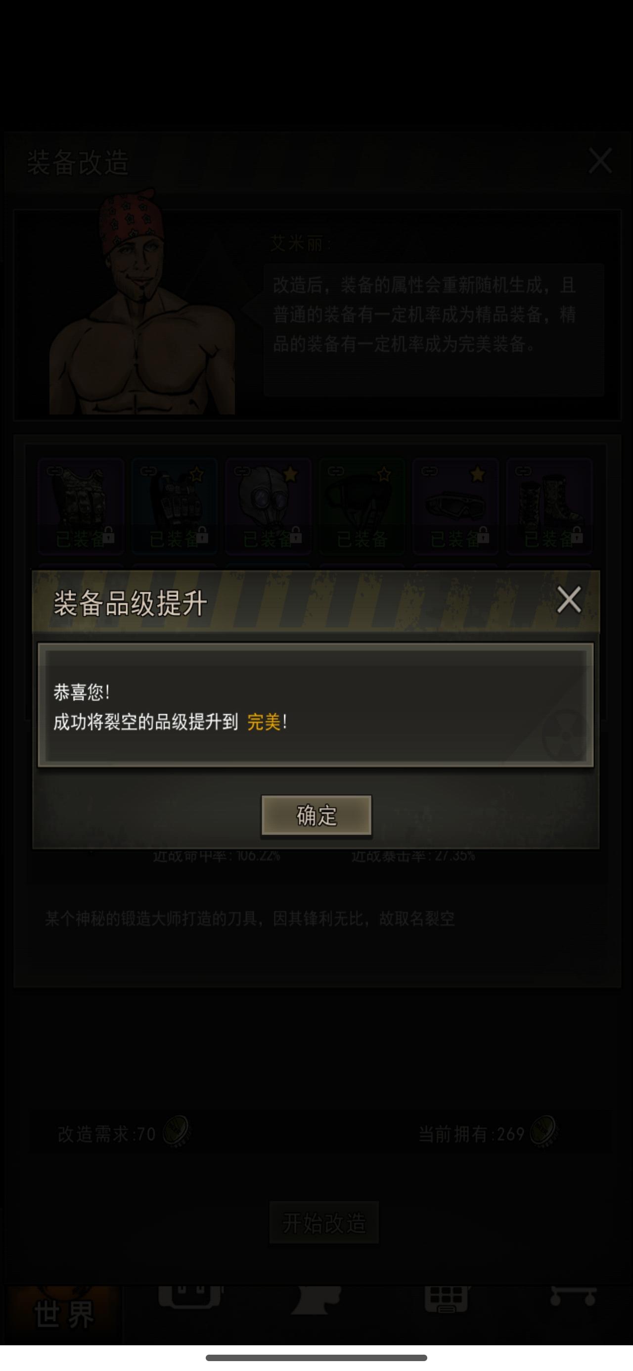 试过了,带网稳卡111,也要带喷火不然挺磨刀的。双刀双闪双奶很稳。本来科研这东西是想以后不用轮五牙了,最后发现五牙爆率不太行,还得轮[表情_震惊]不过好像掉装备概率尚可的,挂机打了了10次,掉了一个合金盾、一个摩托车头盔。 #图九雾妖挂机卡111打法#重建家园 #老肖短5cm 试过了,带网稳卡111,也要带喷火不然挺磨刀的。双刀双闪双奶很稳。本来科研这东西是想以后不用轮五牙了,最后发现五牙爆率不太