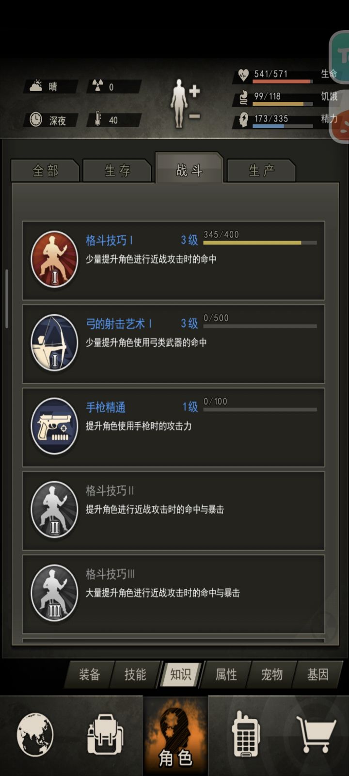 如图,感觉进度一下慢下来了,好多探索方向,也不知道干啥。①现在打算在做一个蓝色斧头,木工还和刀具生产还差一点。②力量是吃了烤肉+2,健身1满了,下一步打算练瑜伽,可以吗大佬们。③有去做蛇童,有点社恐加上不熟练,老是被打死😭,打算练一下卡位再去,食物不缺了有很多肉干。④我种了很多土豆,我之前老是吃烤土豆,但没柴了,拿土豆没办法。现在是每天去图二森林捡柴,但是消耗很快。⑤最后一张图是屯的东西