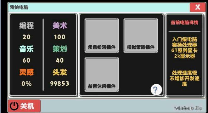 科普:相同插件或没有,三种类型游戏(比如模拟策略和休闲益智类)虽然开发时间不同,但是开发分数算法相同。。 分值之比,音乐:美术:策划=5:8:10 价格之比,音乐:美术:策划=2:3:4 淘宝性价比为 2.5: 2.666… : 2.5 因此除去阀值,淘宝买美术最划算, 为 美术>策划=音乐 (若是加上购买时间,美术>策划>音乐,但策划比音乐只省了5分钟。) 一个bug -50分 20 编程 每次