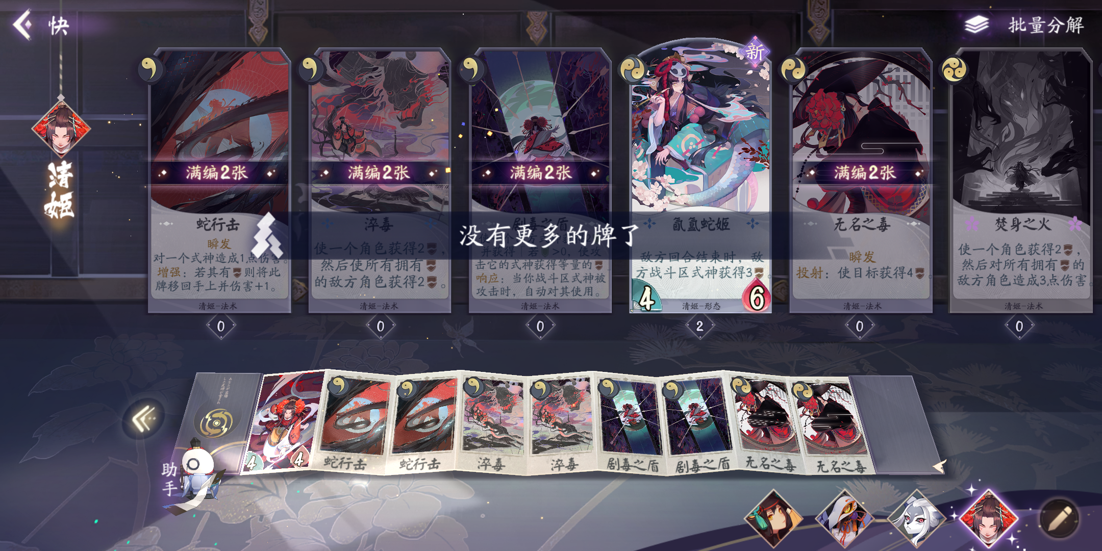 本次测试中,最让我看不懂的是先手机制。先手一方的时候,对面牌手直接5点护甲,其次本方只有1鬼火。我就想知到这种机制下的先手唯一的意义是什么呢?除了给犬神加个属性牌或者山兔给其它式神加个buff还可以之外。完全没有先手该有的样子其次~如果对面是个快攻流,有妖刀姬这种在一勾玉时就能一套打你最多4下的情况下,必须拿个式神上去卖一波。那这个先手的意义活活变成找个式神上去顶一波。后手反倒杀了你的式神还