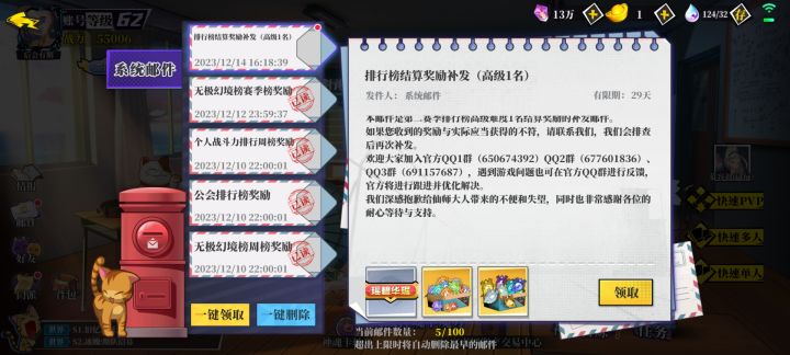 各位玩家大人好,新赛季将于2022/6/18 9:00开启。游戏会于18日8:00-9:00停服,届时将结算上一赛季奖励(游戏内奖励,尽量丰厚些反正),并给发放新赛季的福利邮件。新的赛季持续时间为1个月,于2022/7/18 9:00结束。该赛季结束时,会以排行榜积分给排名靠前的玩家大人实物奖励!注意排行榜积分是由【所有区服】统一来算的积分排名。列表如下(数字为排名):1 PS5游戏机2-5