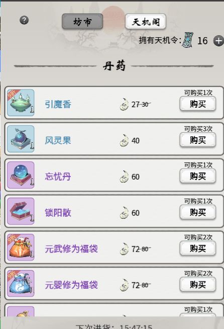 练了好多个小号了 基本上都是到化神之前的 感觉走了一些弯路 总结出来给大家看看 想到哪里就写到哪里 如有不对请指出 欢迎探讨。 1.炼气期的聚元丹会溢出,不要在天机阁里购买了。 礼包里会送两个一阶修为秘药,再加上任务里面也会送,基本上你吃完到筑基肯定是满的,买多了浪费机缘。 2.结丹后双修,另一修炼方向每前进一个境界天机阁都会刷新一次。 这个还蛮重要的,基本上第一天就可以让你到结丹后期,换修炼方向