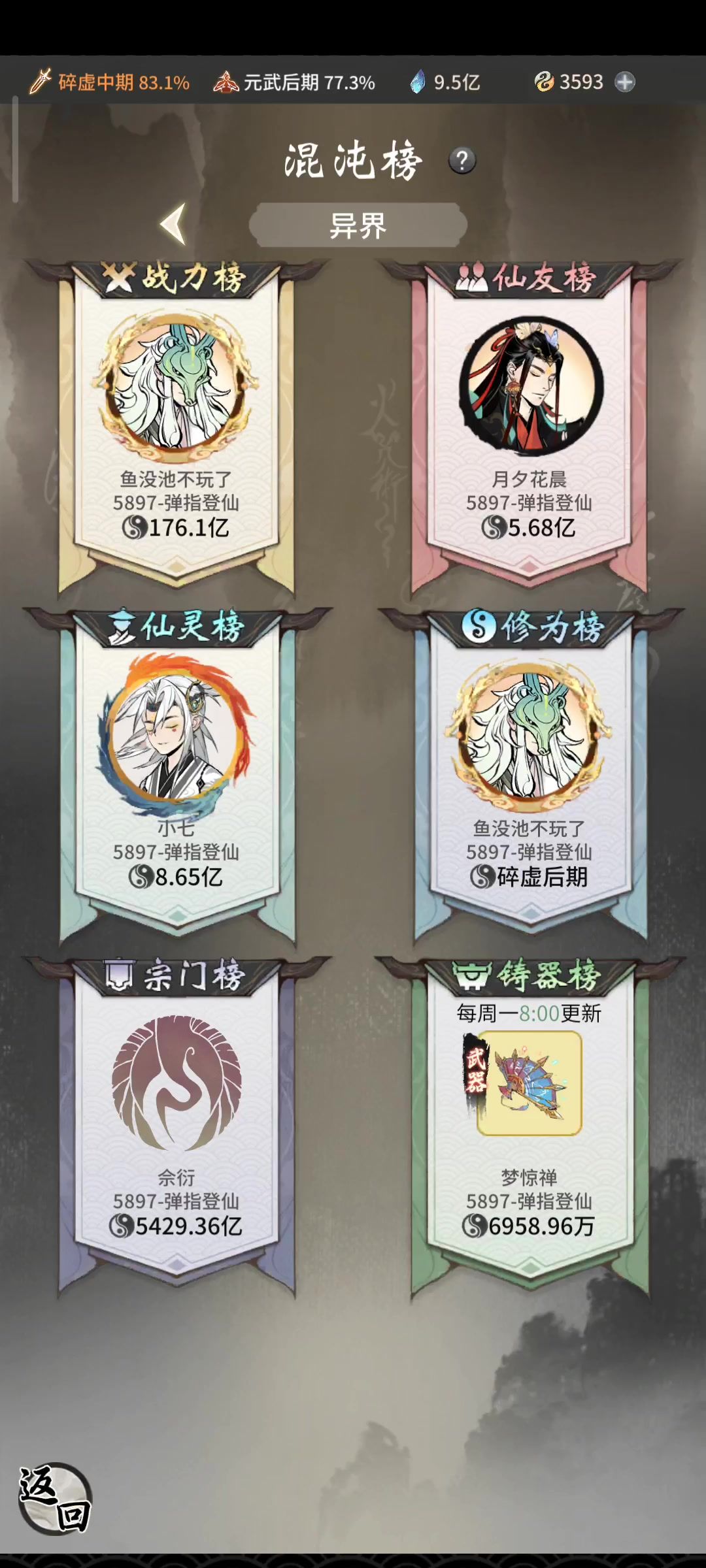 4.10直接更新正文,全文皆有调整: 更新一下目前的属性和神通: 可以看出,和之前的思路相比有了一定调整。讲一下技能顺序,开局第一个技能肯定是放盾,然后是灭魂剑,再接风雪,再接五雷。在不考虑对面三金宠且宠物强度都很高的情况下,这三个群攻过去对面宠应该就没了。接下来的五雷金很关键,如果对面是法修的话,这个时候他的盾应该刚好时间快结束,之前的五雷如果打到人了,那么增伤效果还在,龙渊和镜花爆发,能秒掉对
