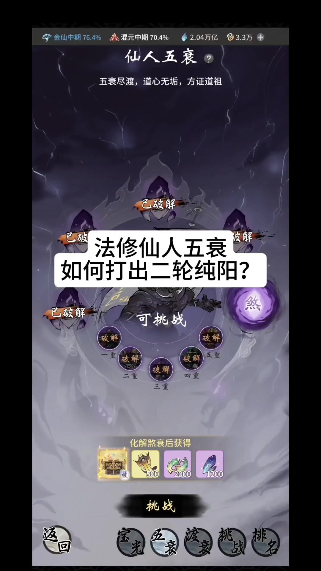 法修仙人五衰如何打出二轮纯阳?