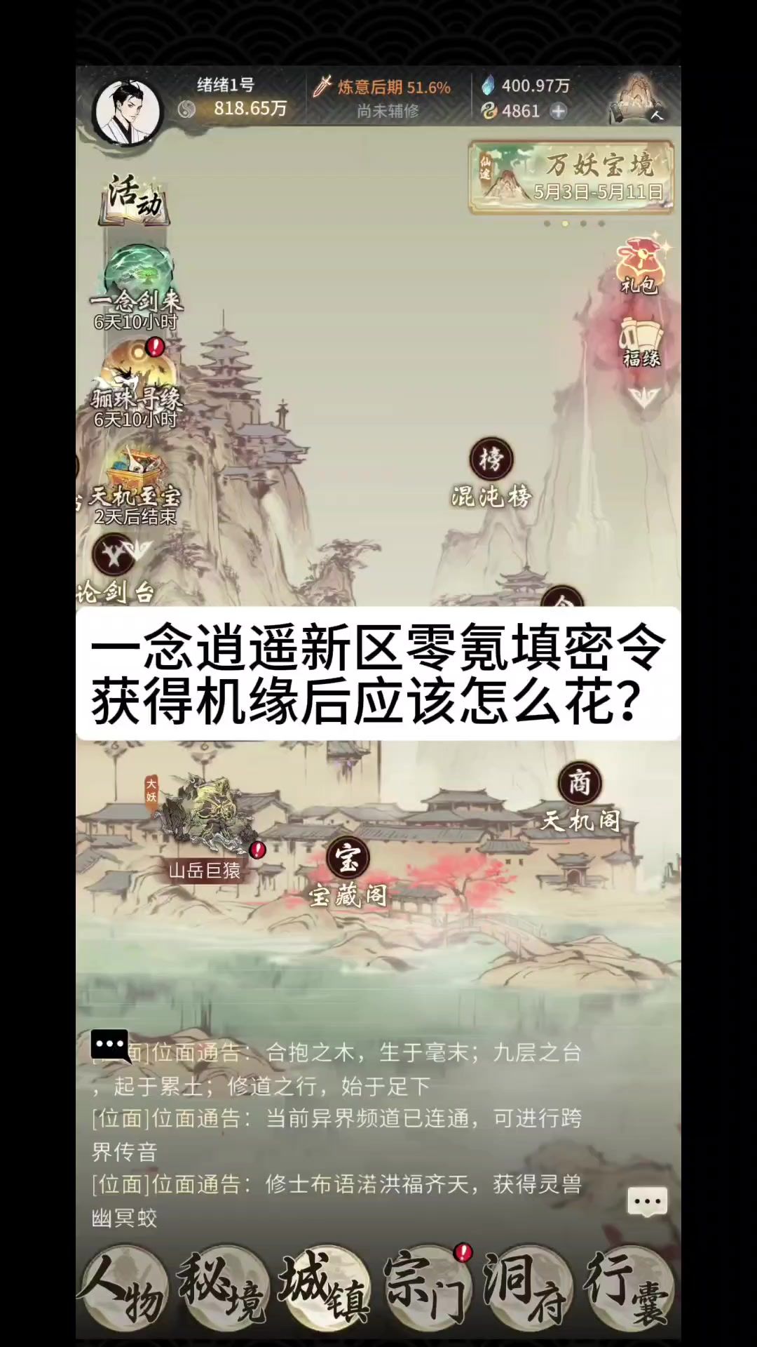 一念逍遥新区零氪填密令获得机缘后应该怎么花?