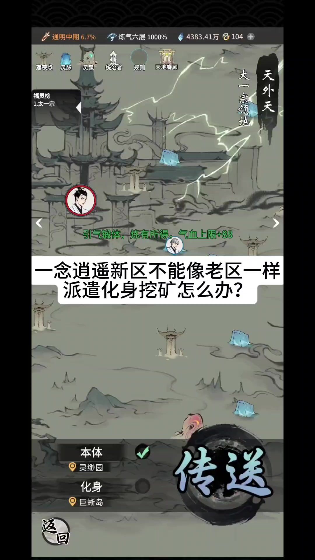 一念逍遥新区不能像老区一样派遣化身挖矿怎么办?