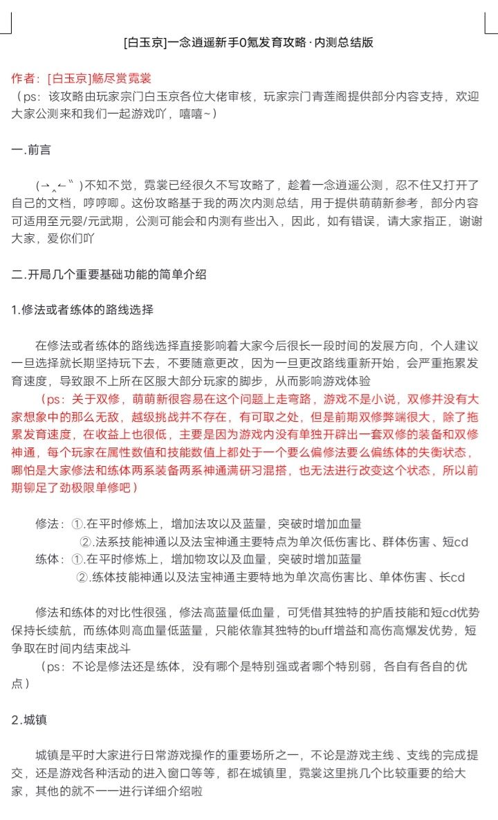 [攻略团]一念逍遥新手0氪发育攻略·内测总结版