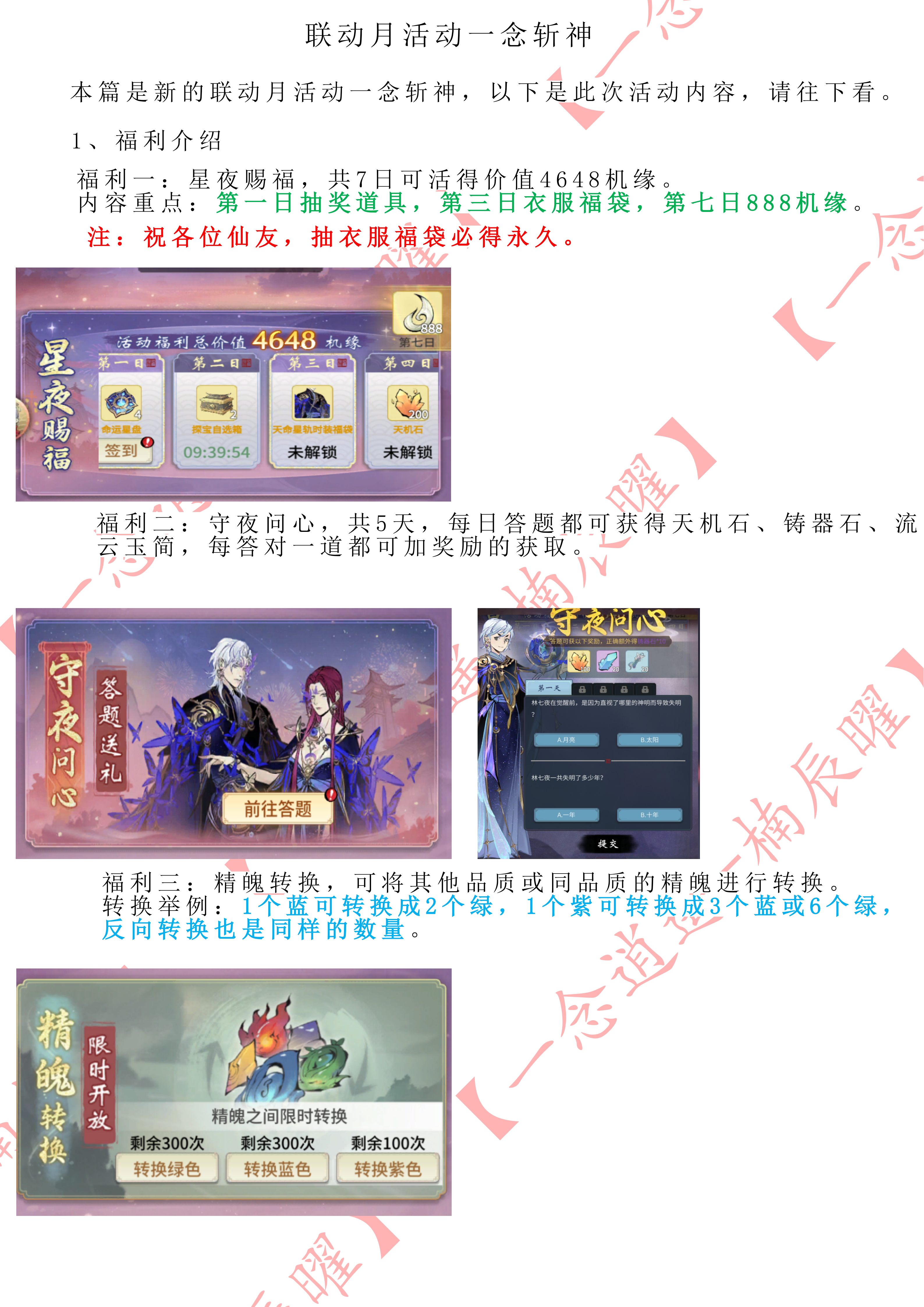 五周年庆典今日正式开启!!!进入游戏,在周年活动踏星途跟联动角色林七夜切磋过招再与新仙灵年结识这个周年庆,福利多又热闹可以免费拿月卡、秘境刷至宝还有免费代金券、时装可领取!今日一念斩神新大区开放,盛况更是非凡仙友云集,诸神隐域,组队斩神也还在等你参与!今天还有两个小更新,欢迎大家查看互动溯梦仙途活动介绍五载仙途,回首依旧温暖如初“溯梦仙途”活动今日上线仙友可在游戏内-活