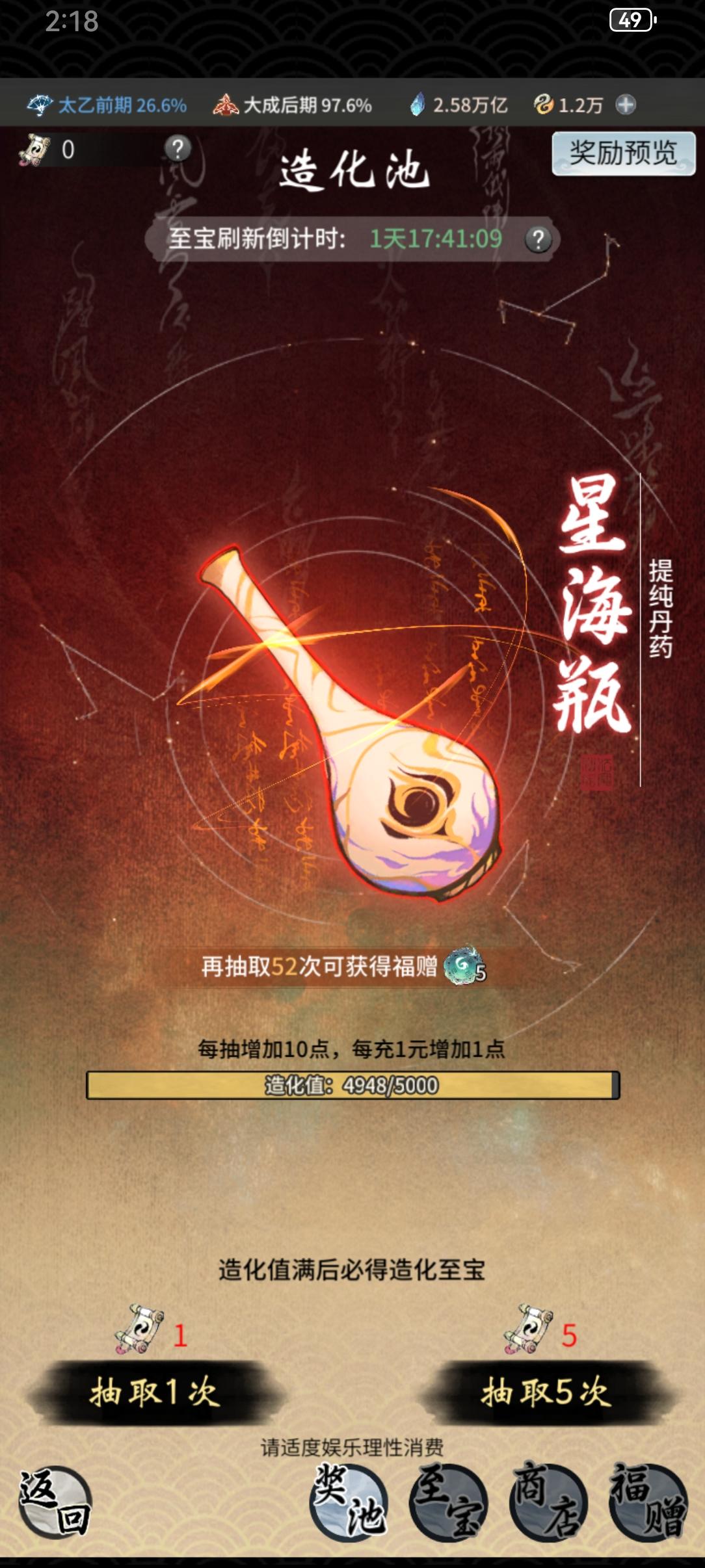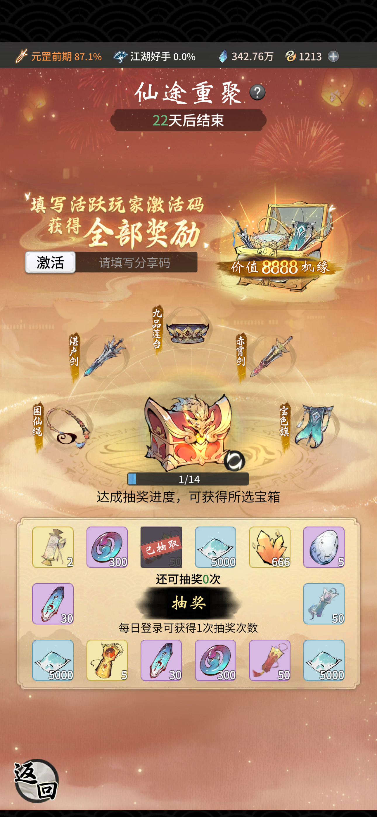 不得不说这次的活动对于三卡党非常不错的,首先是年年都有的免费月卡可以拿30抽,在加上每天的福袋(平均一天四个),重点不是抽瓶子而是3天的瓶子体验也可以爆五抽,每次的福袋也有2抽的效果瓶子这种烂大街的东西已经过时了,要变成人人双至宝了,仙舟对于回归号和道年都不好,仙舟的怪统一是太乙难度吗,吃不上增幅确实是没招,既然都是回归号了为什么还是绑定逍遥判定想上云游都没办法(退游一年还是逍遥)最最最让人体