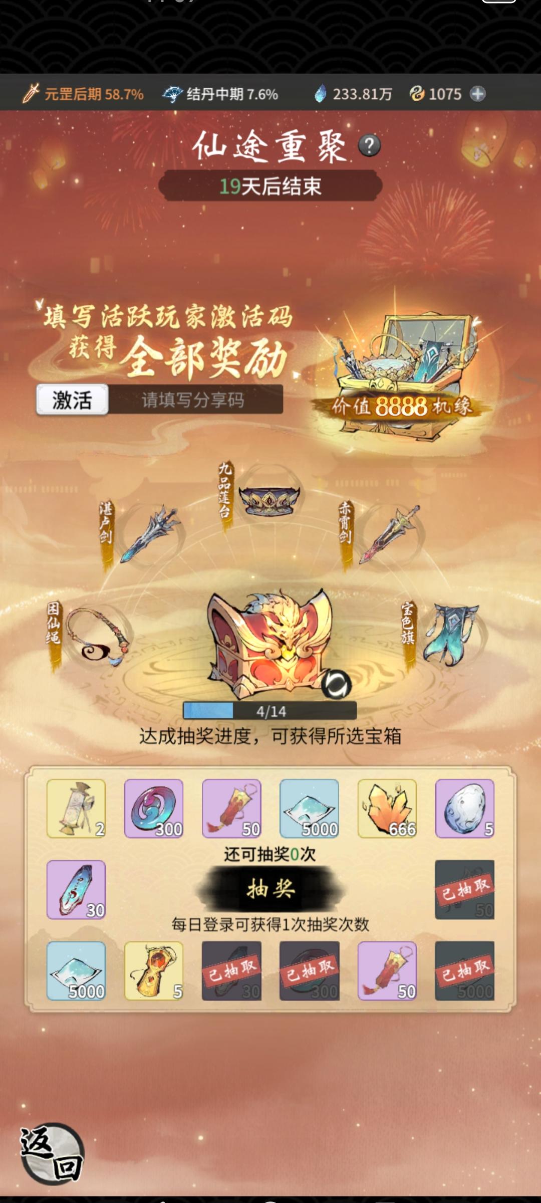 兑换码:一念逍遥斩神动画联动隐藏码:威 嗖 星落大侠 回 33可领:8000机缘/密令、5000代金券兑换码:瑶台观兔影兑换码:梅枝沁寒香兑换码:明月照积雪兑换码:金霞落玉台兑换码:溯道入无极兑换码:灵台纳须弥兑换码:纤云织锦帕兑换码:诸神授仙力兑换码:天机落锦笺兑换码:紫气叩新元兑换码:清风满归途兑换码:诸天贺五载兑换码:涤净诸神心兑换码:仙舟渡星海兑换码:千宗