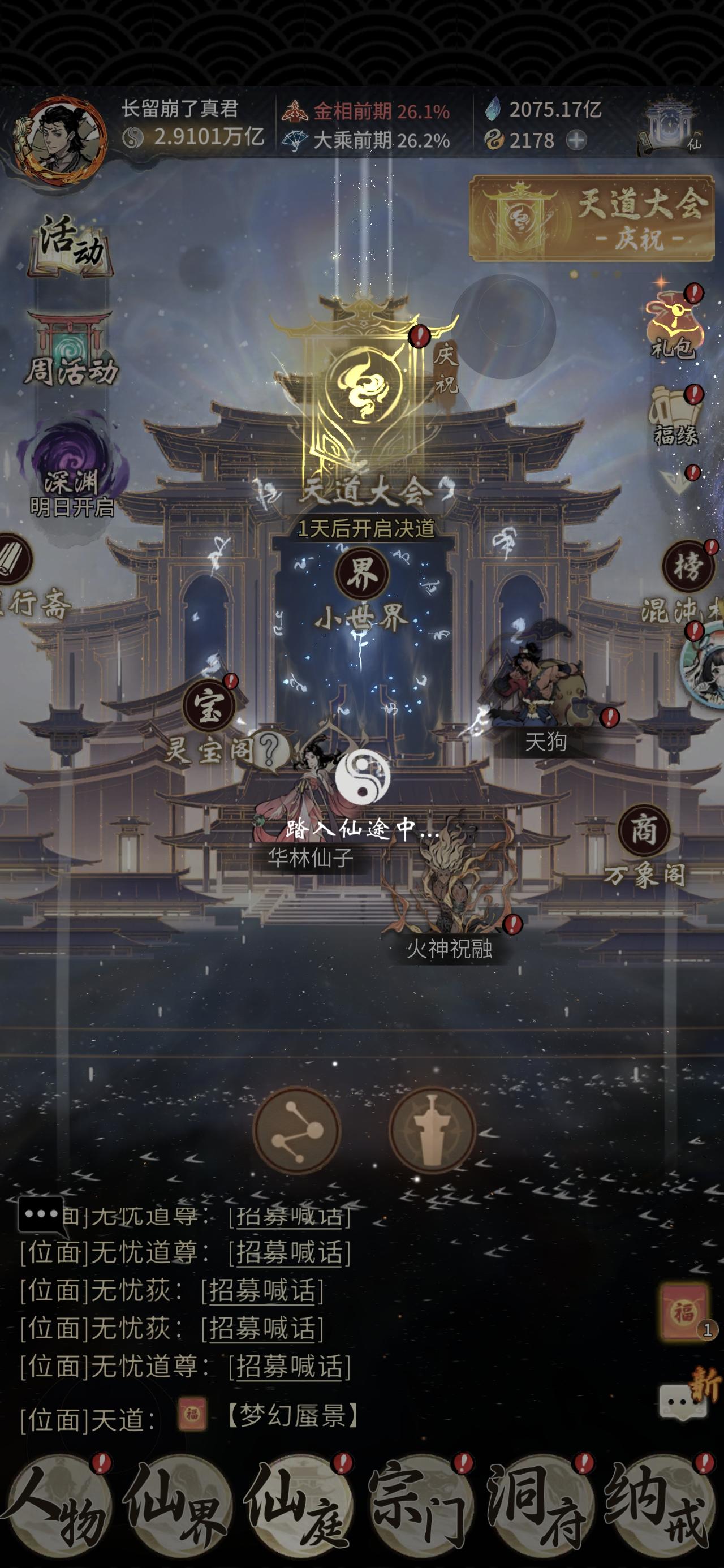 2622诚招各评级仙友,宗门全员活跃,养老轻松,周周抽月卡,有意传音/申请#发现好游戏