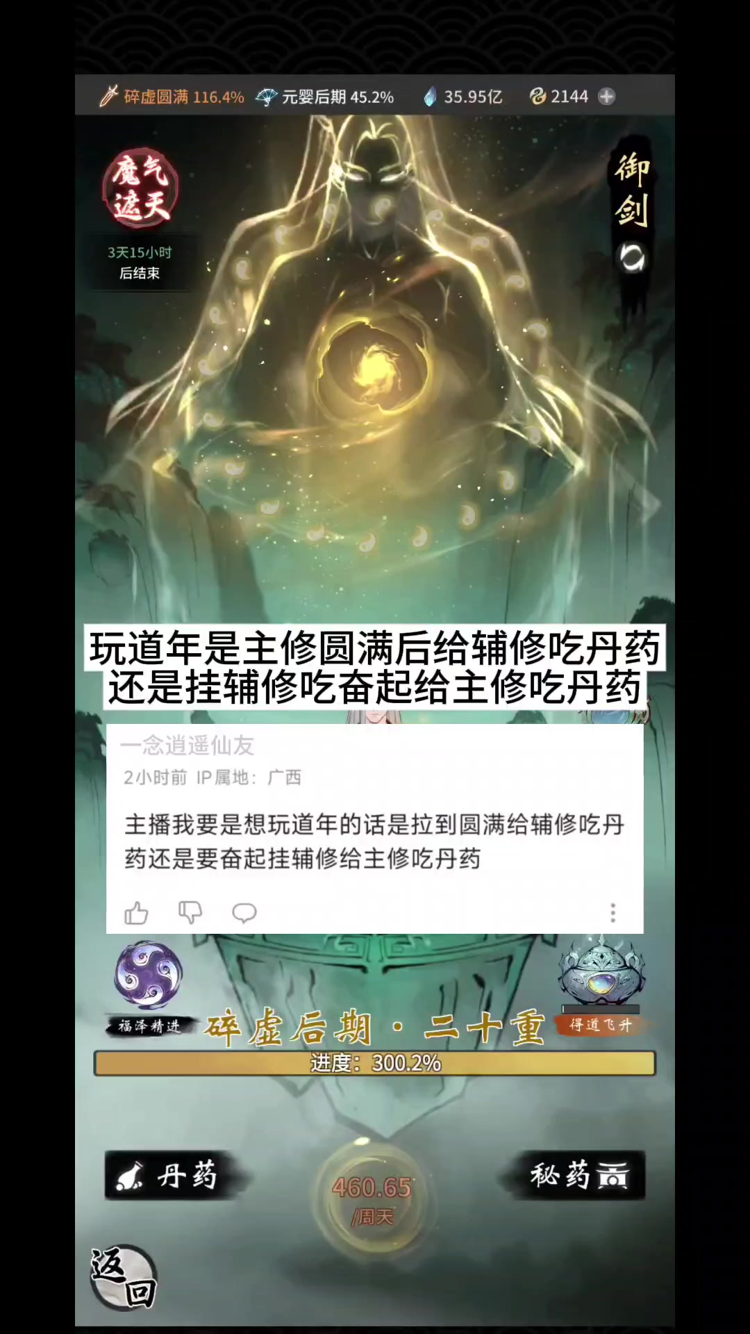 玩道年是主修圆满后给辅修吃丹药,还是挂辅修吃奋起给主修吃丹药