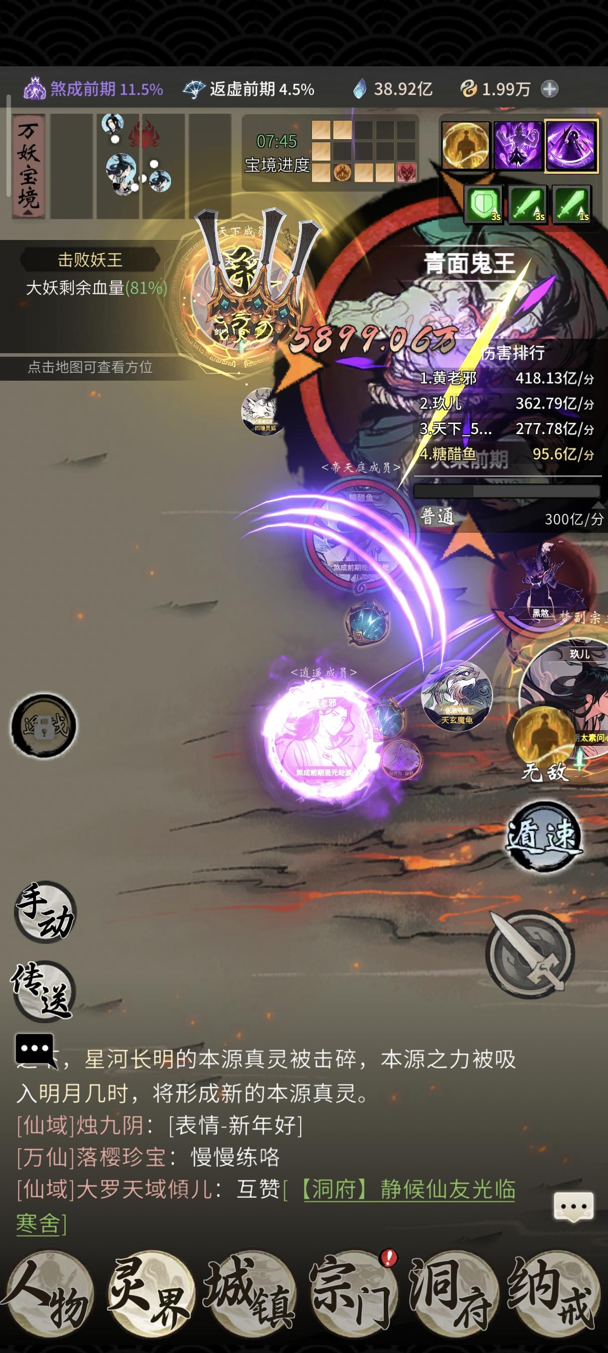 极限过关,69亿战力,1284万法攻极限过关。配装如下,因为面板不高,所以精通了三个神通。采取卡百晓生的方法站撸过。(b站有鬼修卡百晓生教学)因为面板比较低,所以是非常极限的卡点过,有多极限,弹出“秘境存在时间过长,自动关闭”这个消息,把我踢出来之后,奖励显示可以领取。我推测是在超时的最后一秒,百晓生刚好到判官印斩杀线,被判官印斩杀,所以我既被踢出秘境,又击杀百晓生。但因为卡掉百晓生是看