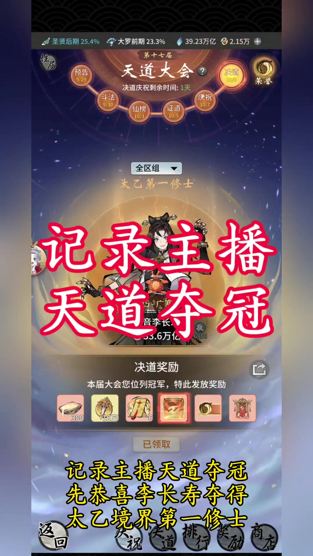 圆满后还给一个道图圆满的称号看来得看来得双修了