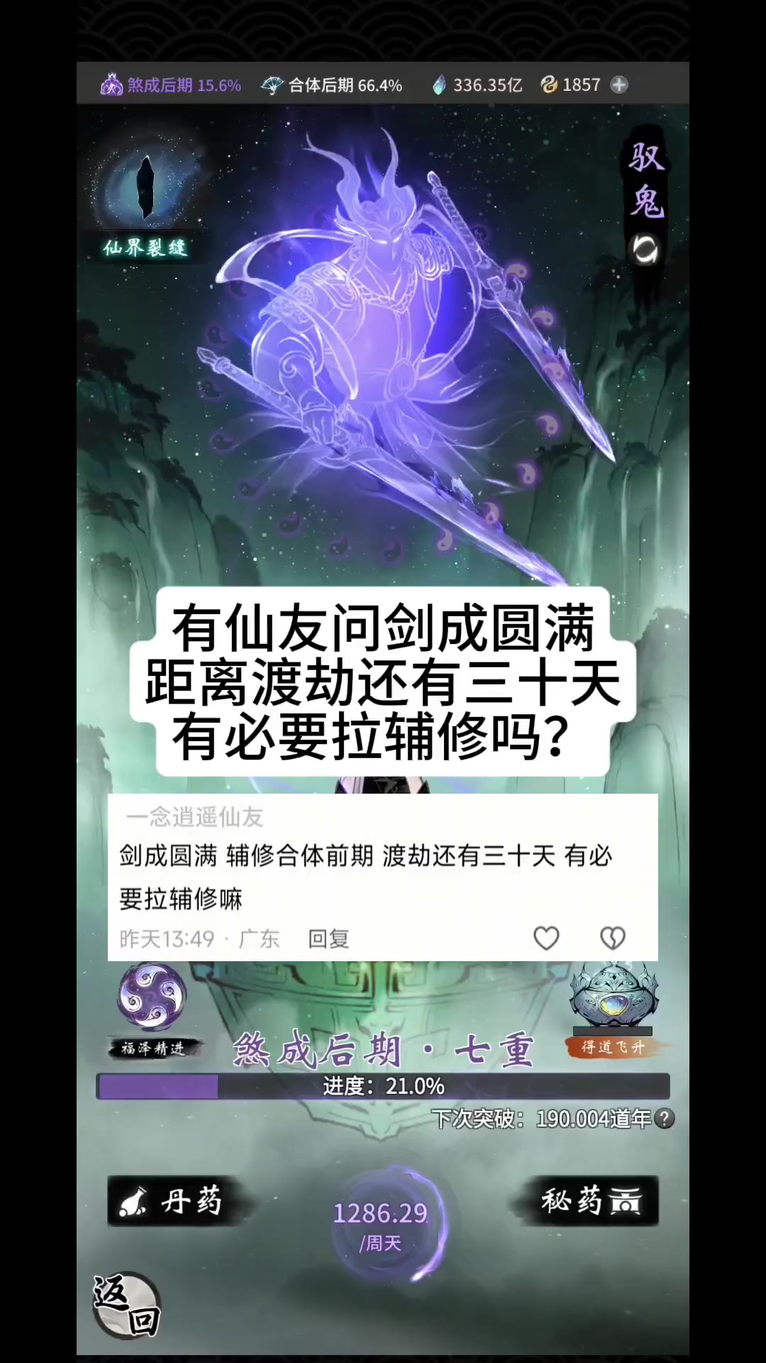 有仙友问剑成圆满,距离渡劫还有三十天,有必要拉辅修吗?
