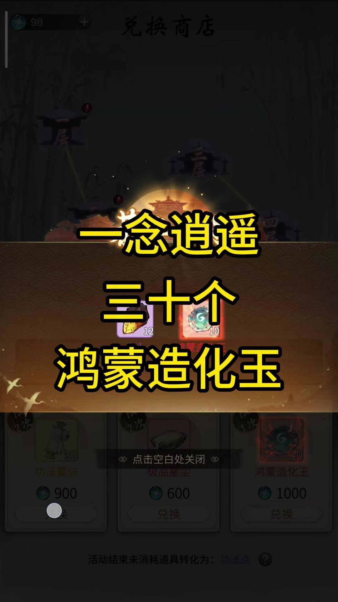 一念逍遥一次性获得了30个鸿蒙造化玉