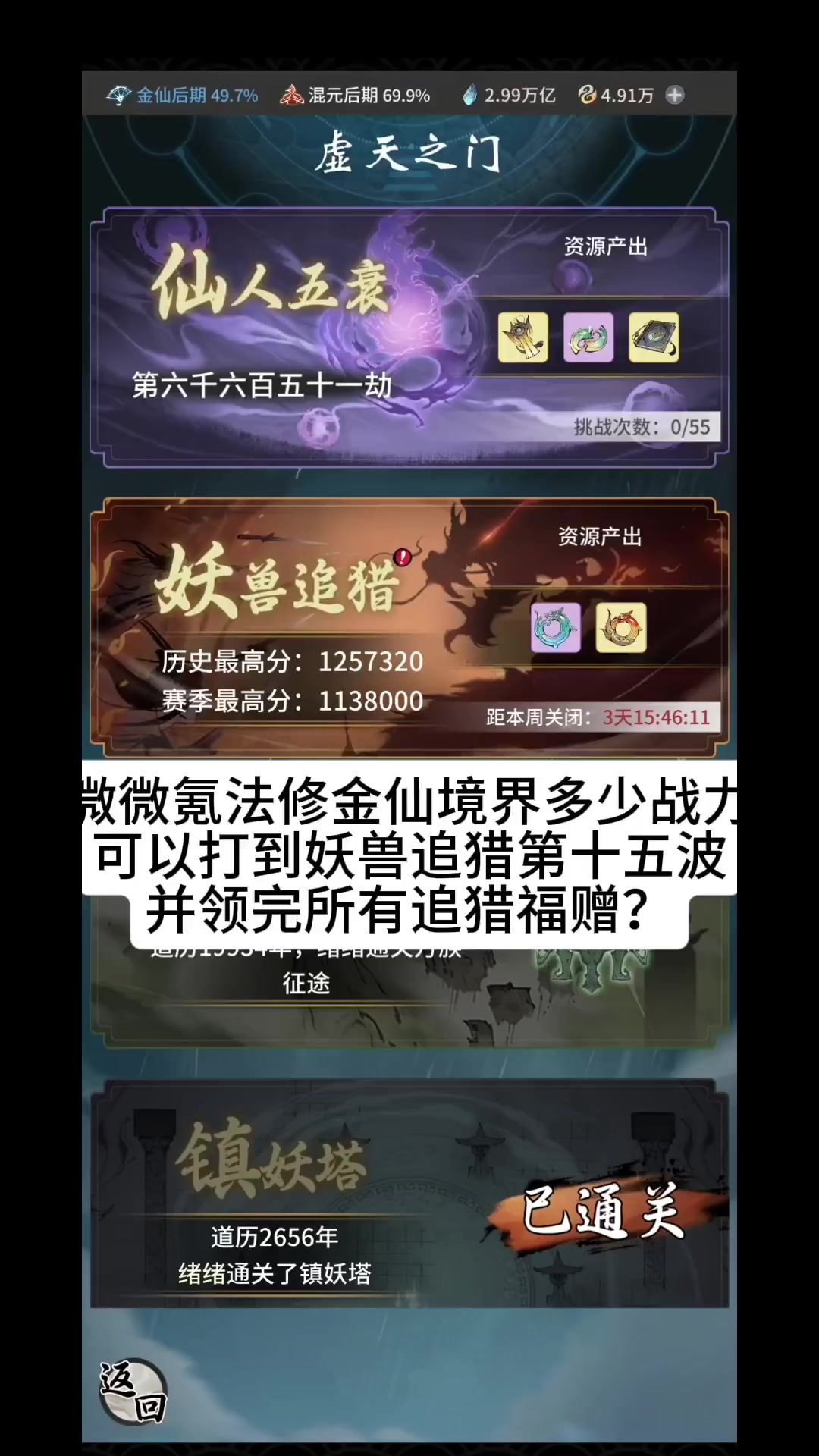 微微氪法修多少战力可以打到妖兽追猎第十五波并领完所有追猎福赠