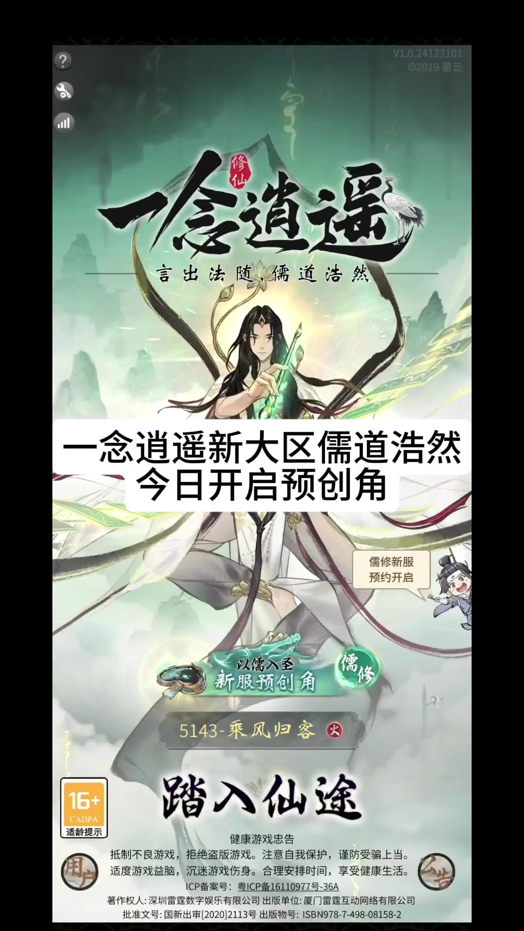 一念逍遥新大区儒道浩然今日开启预创角