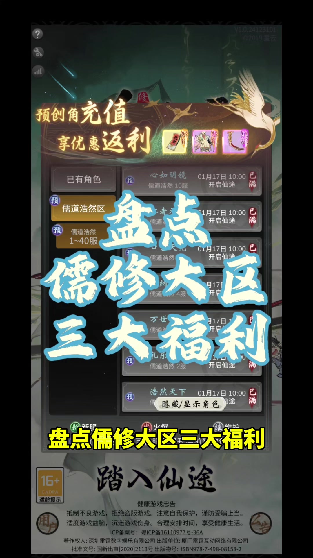 盘点儒修大区三大福利