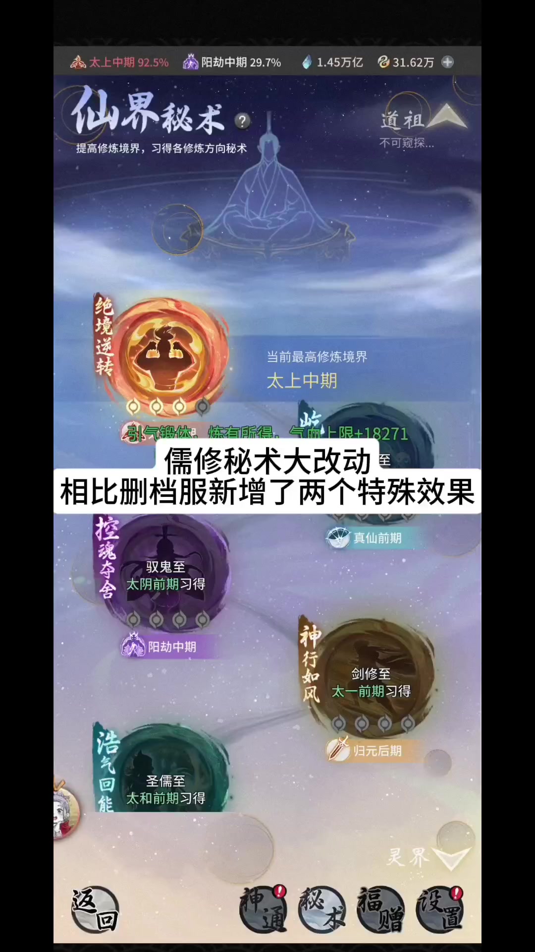 儒修秘术大改动,相比删档服新增了两个特殊效果