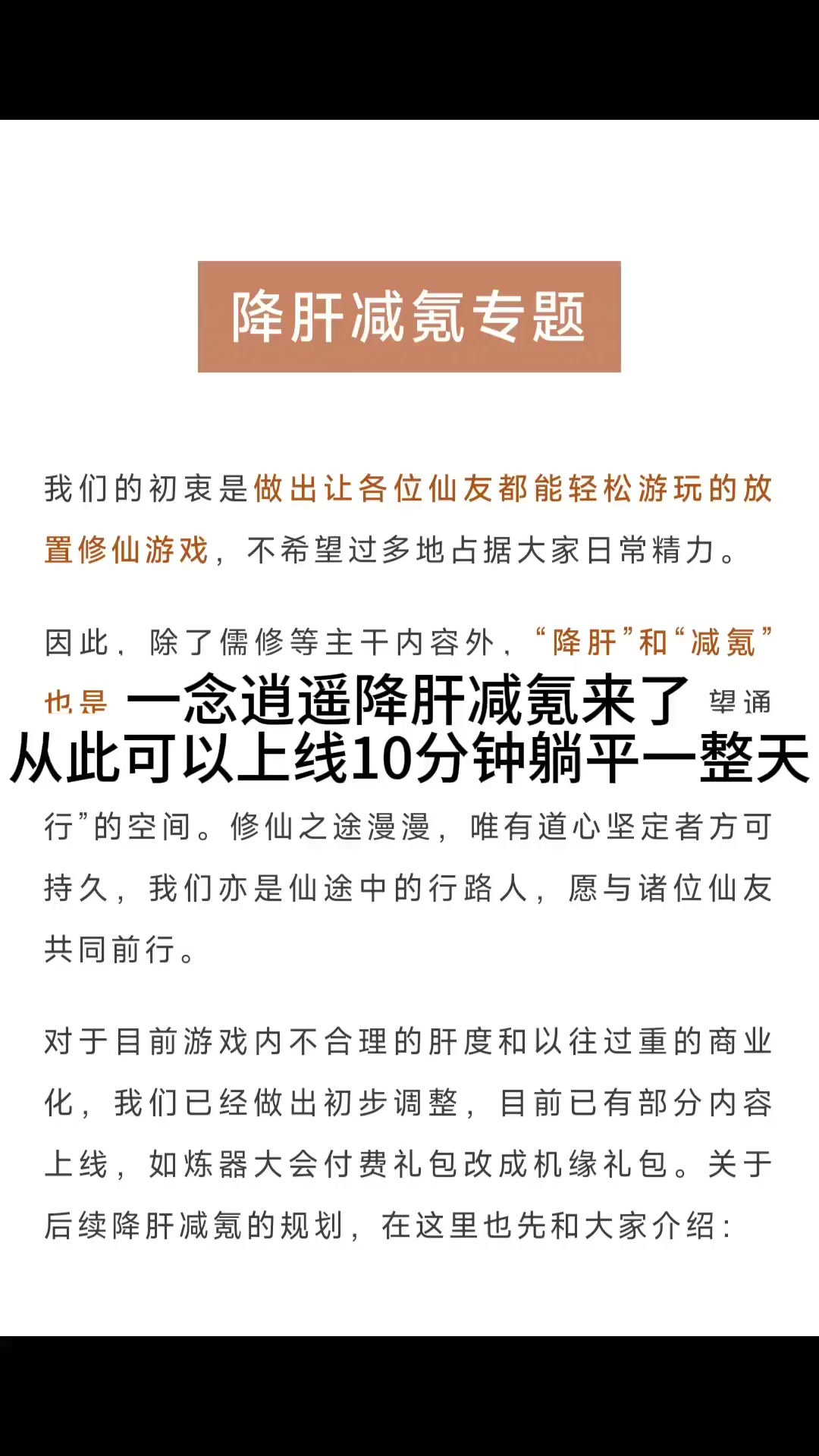 一念逍遥降肝减氪来了,从此可以上线10分钟躺平一整天