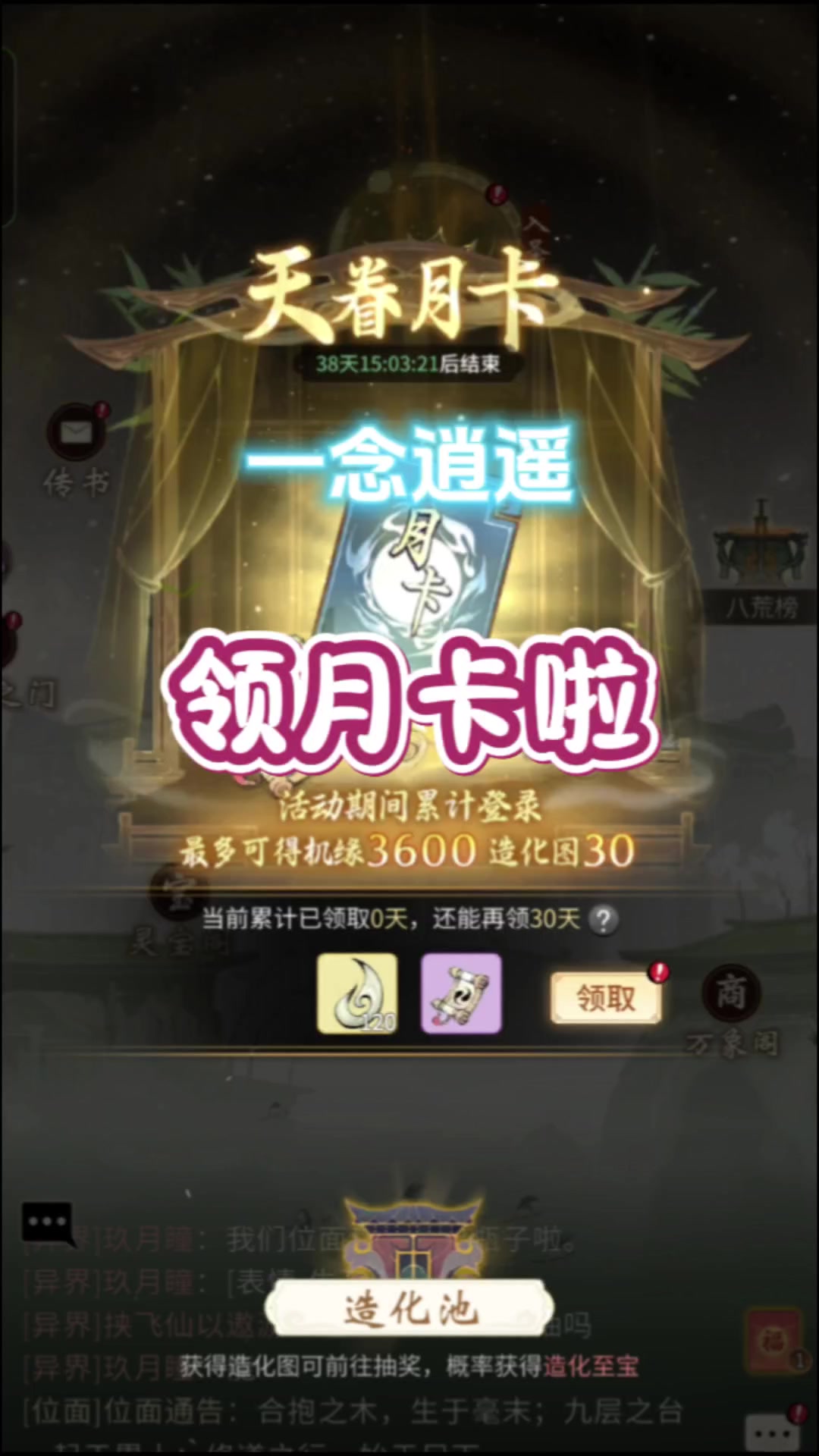 一念逍遥今天你们记得领月卡第一天了吗? #一念逍遥 #全民一念修仙 #月卡
