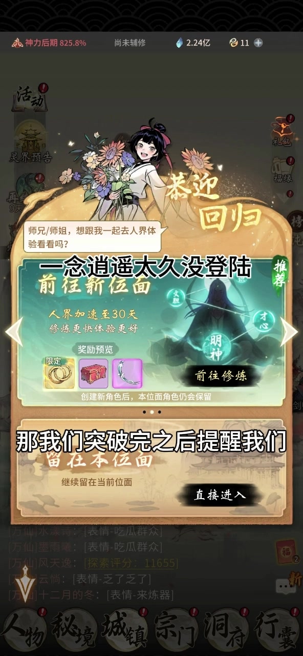 一念逍遥太久没有登录会怎么样? #一念逍遥 #全民一念修仙