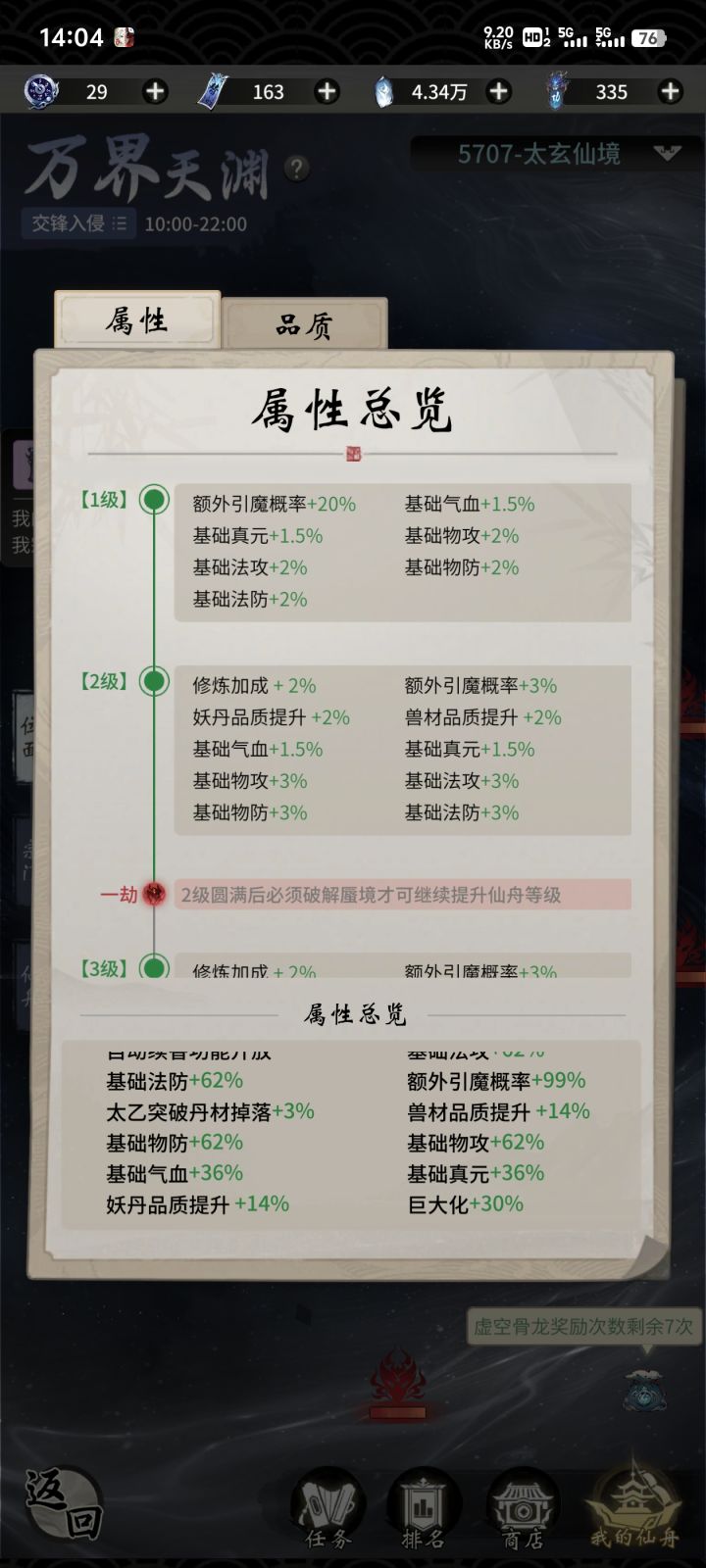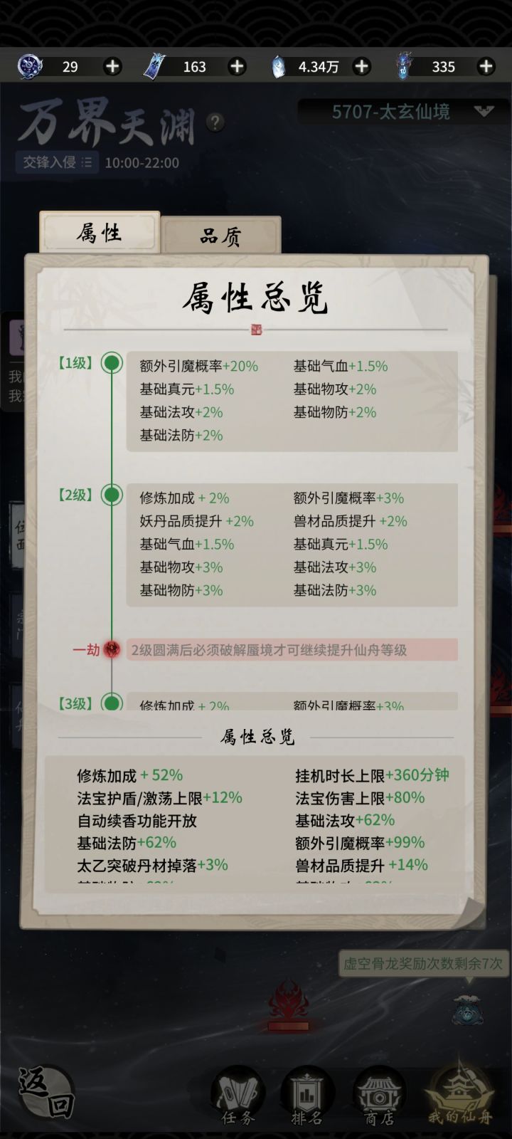 金仙秘境的仙途游历和万界天渊加成不对吧,为什么两者混起来了,并且还吞掉了一些属性,法宝伤害和兽材品质提升概率都不对#一念逍遥 #浅评一下 #游戏日常