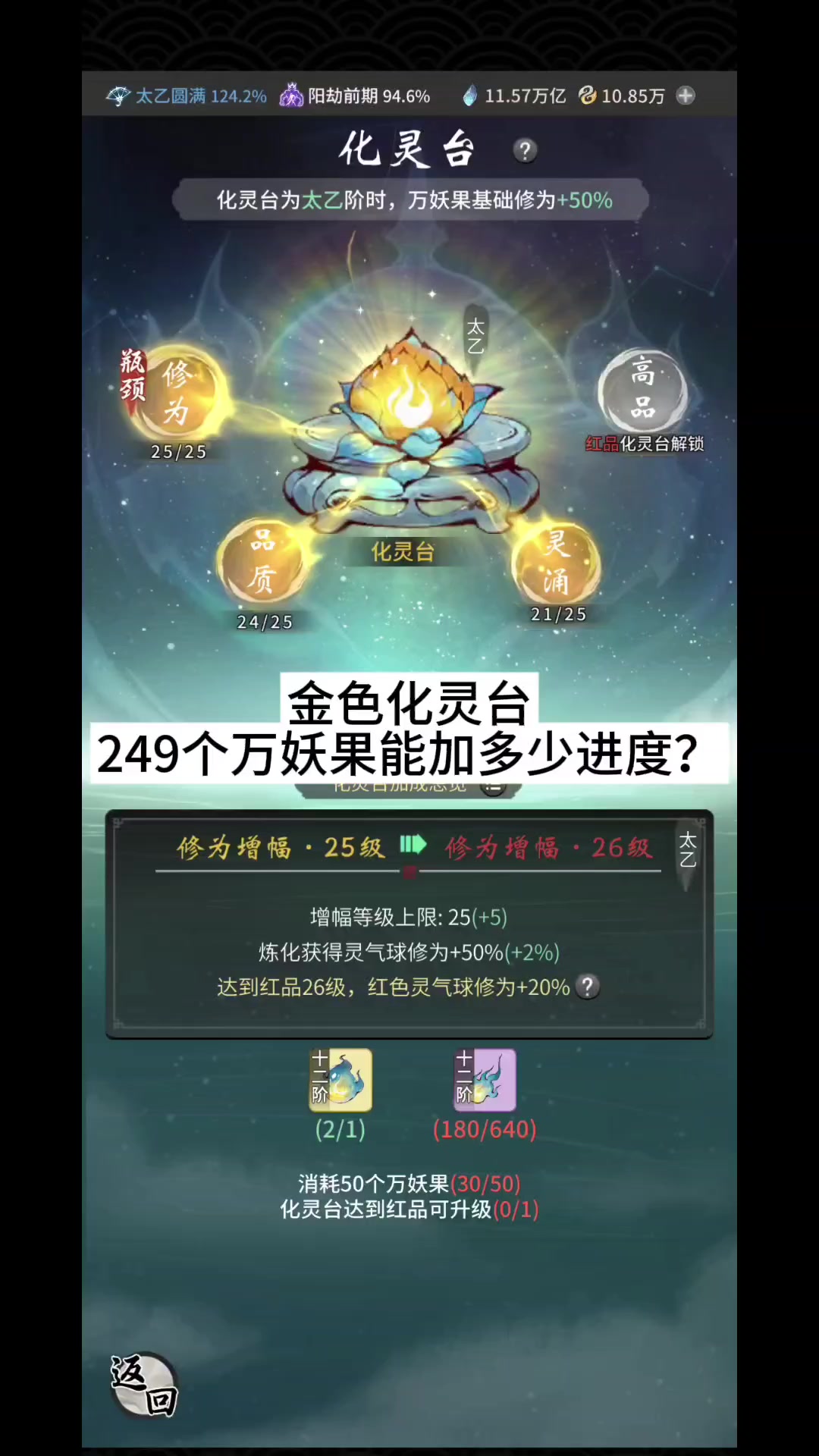 金色化灵台,249个万妖果能加多少进度?