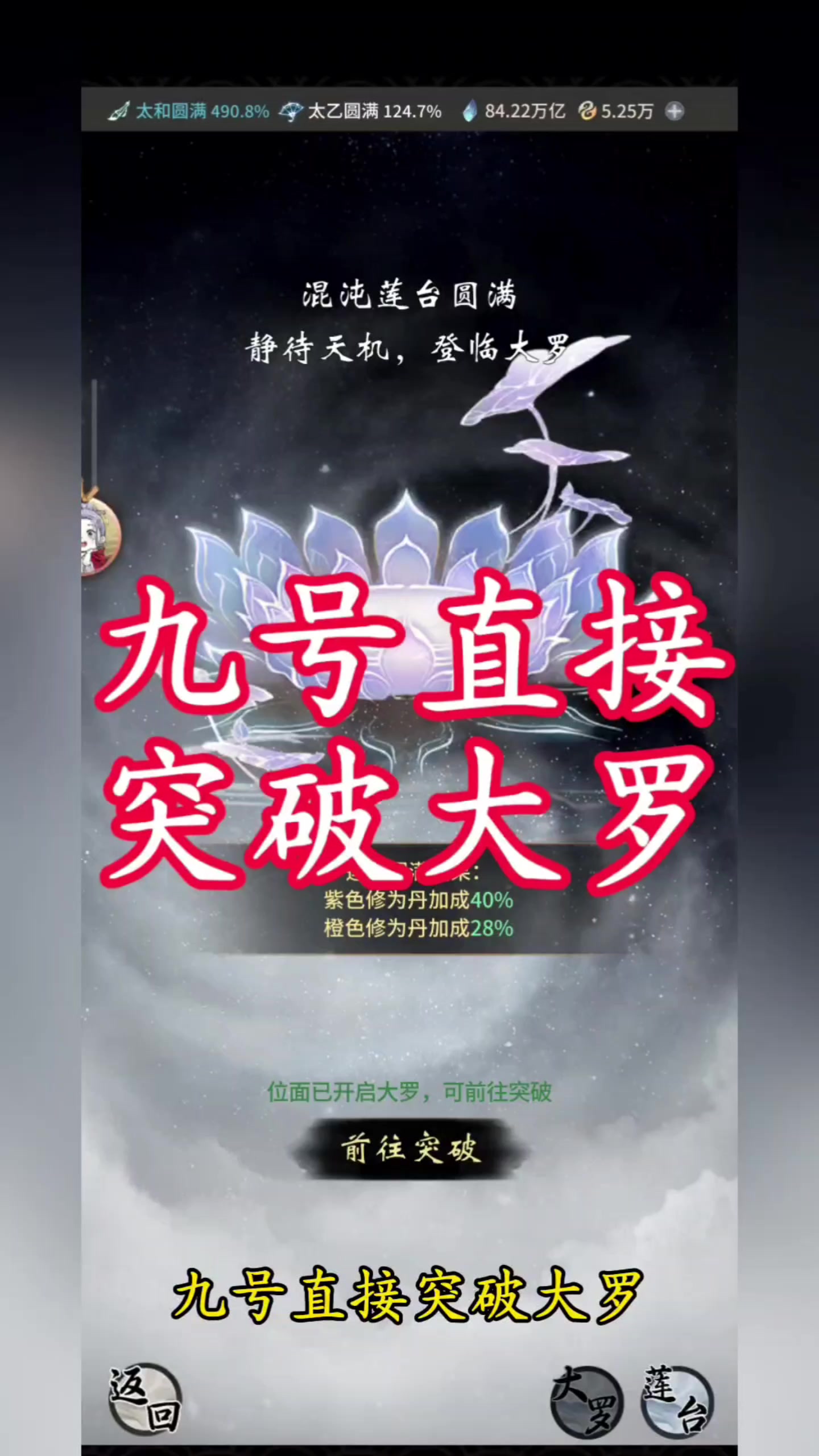 九号直接突破大罗