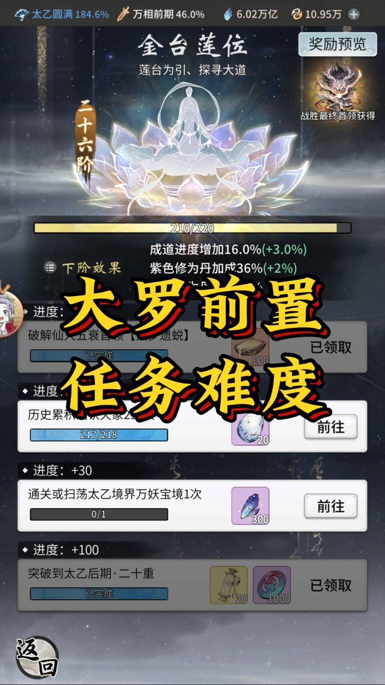 一念逍遥大罗前置任务做完后能直接突破大罗吗?