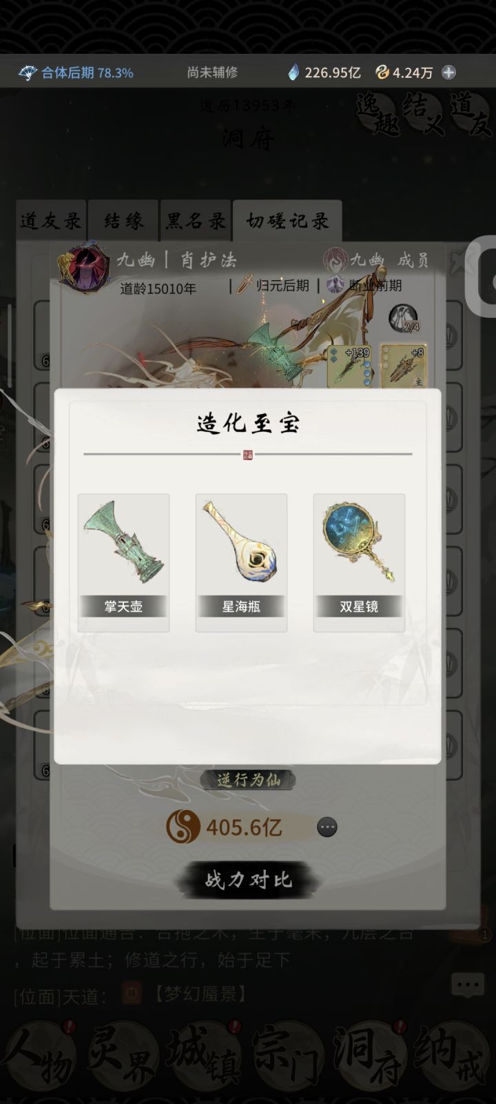 我上线看到战报红点,有人打我。点来一看我居然赢了(一直输),比我高0.13亿战力。我寻思应该跟我一样零氪。点开他主页。他氪了3个至宝。我会一直记住这个人的。
