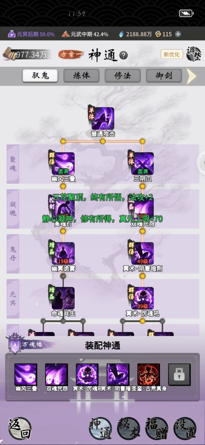 经过了一段时间的努力,我现在已经鬼合冥前期11重,法化神后期6重,预计下周能够选第三修炼方向。想问一下大佬第三修炼方向该选什么好?还有就是我这个账号的练度怎么样?我是个零氪党,还是个学生。周末才有空玩,所以我现在应该先提升哪个地方?又不要浪费资源在哪里?敬请各位大佬的帮助,非常感谢。