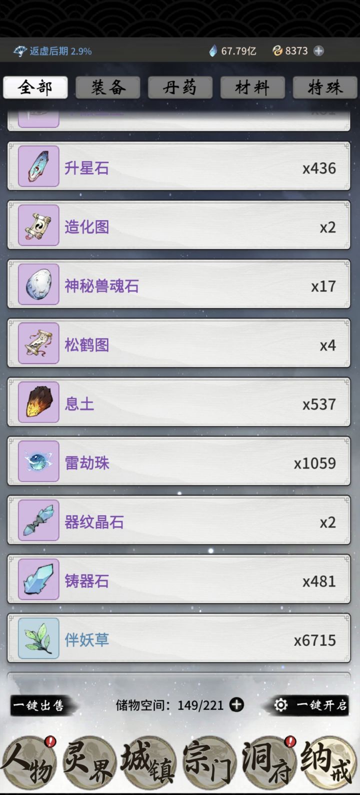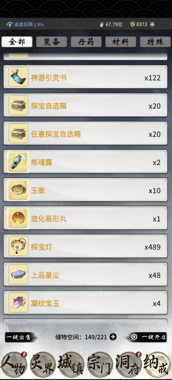 大佬们,现在在灵界,还有一周多开大乘,像探宝灯,息土,雷劫珠攒多少合适呀?