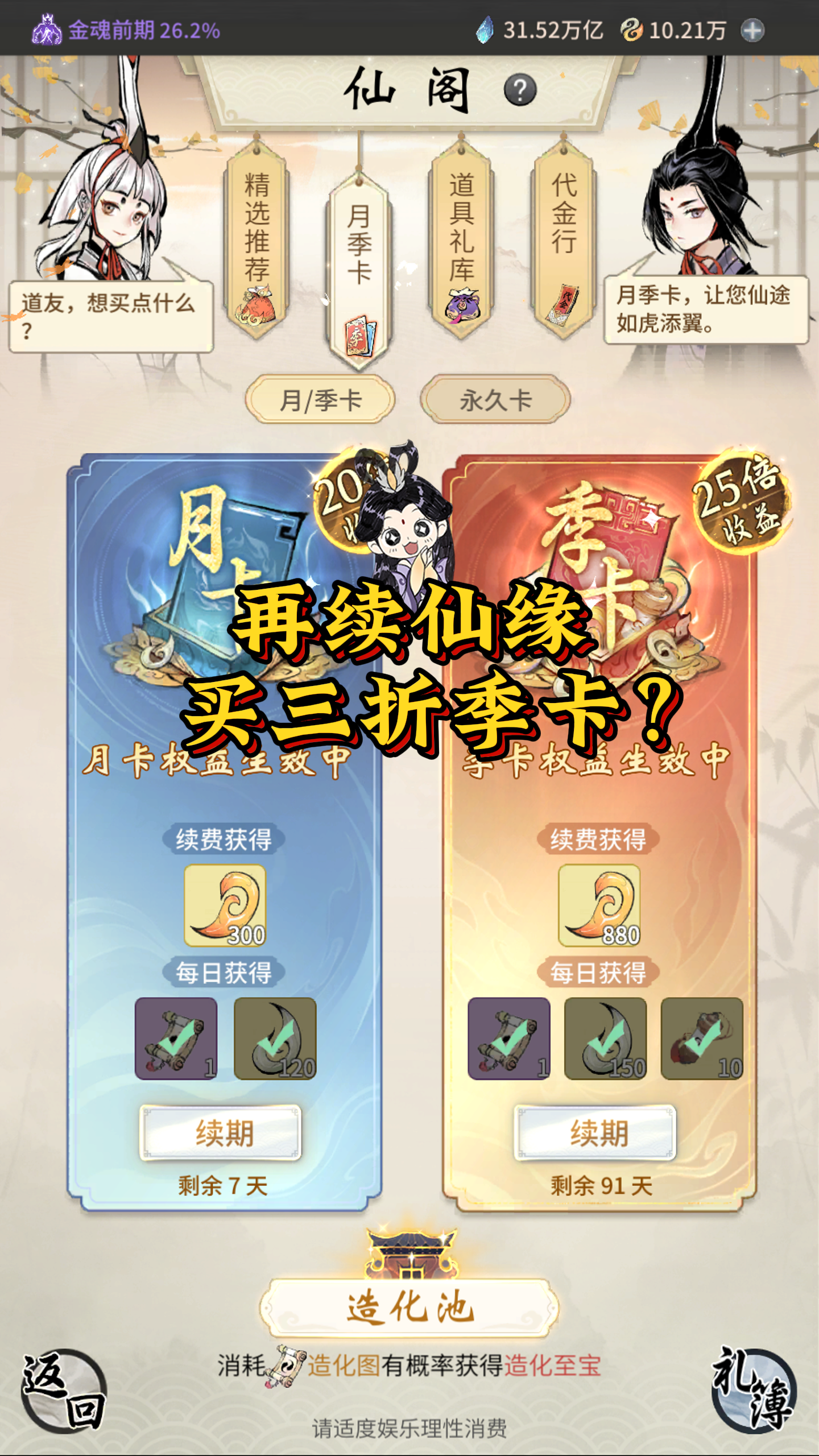 再续仙缘买三折季卡?体修仙界神通再次加强?